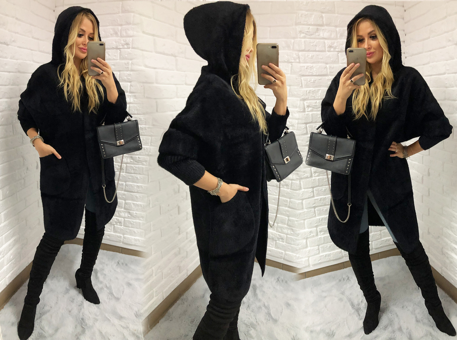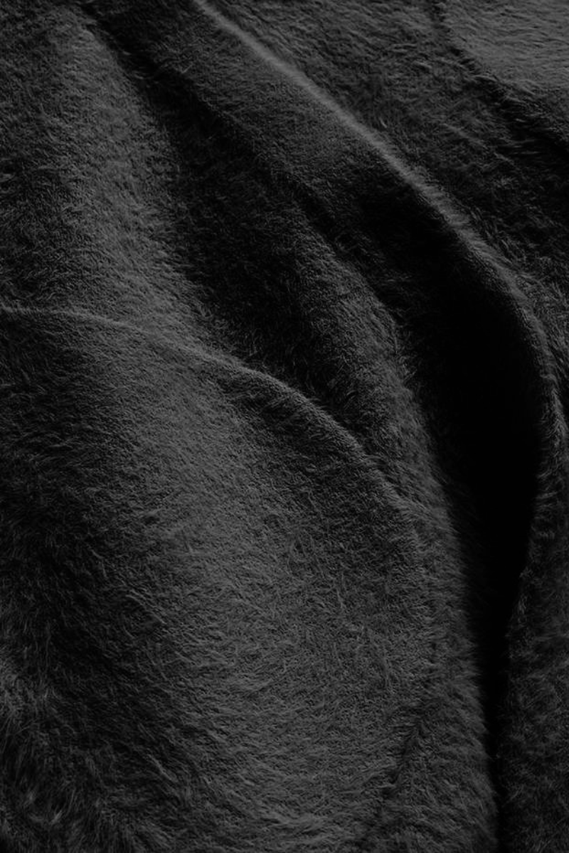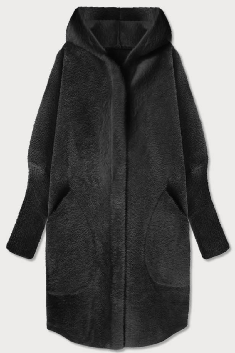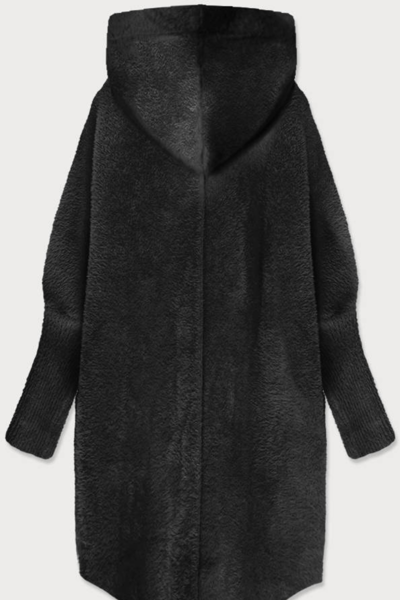 Alpakos ilga striukė su gobtuvu pavasaris-ruduo, juodos spalvos pagal užsakymą