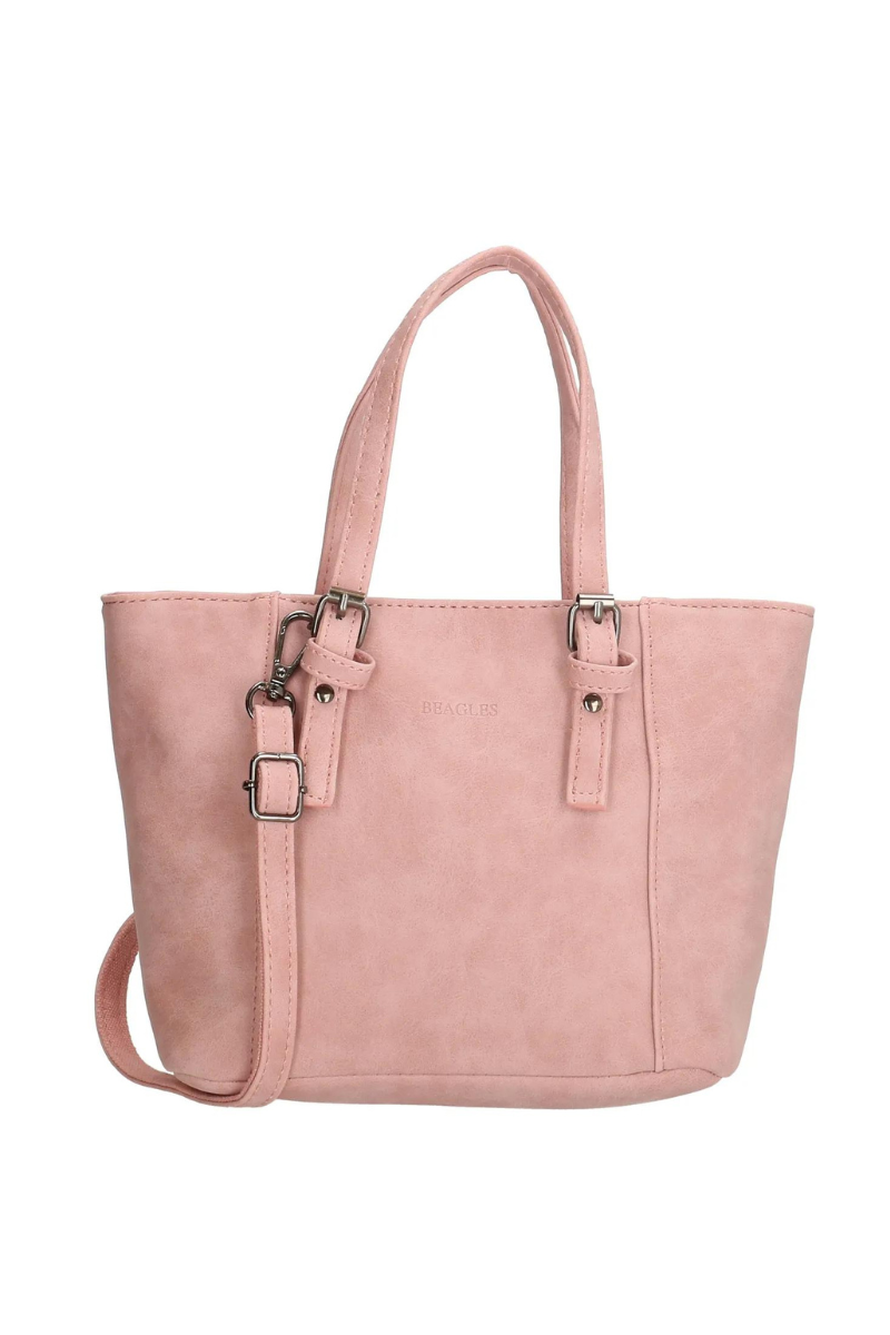 “Beagles” moteriška mažesnė rožinė rankinė per petį iš minkštos dirbtinės odos (taip pat su ilgu diržu per petį) – NAUDOJAMA