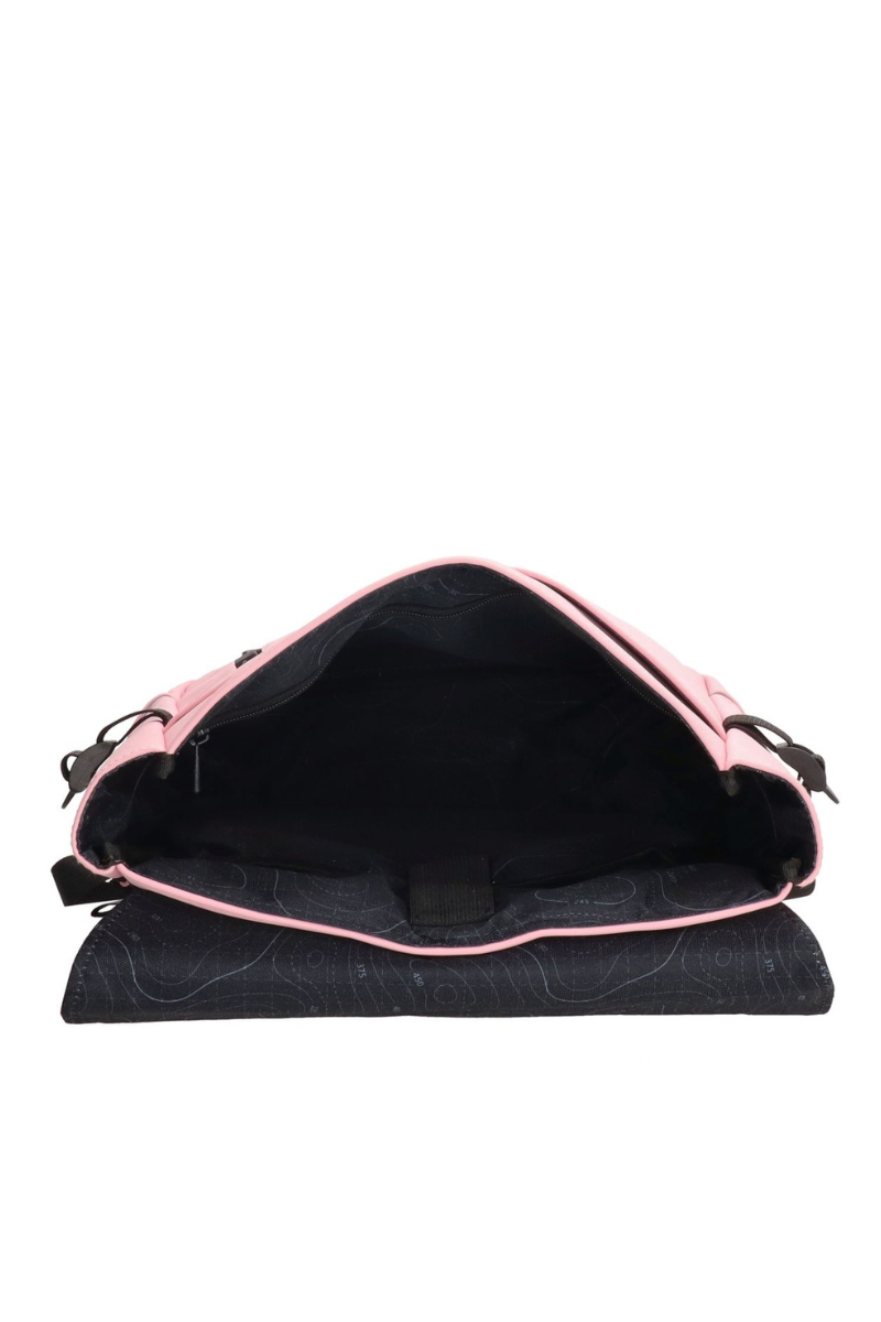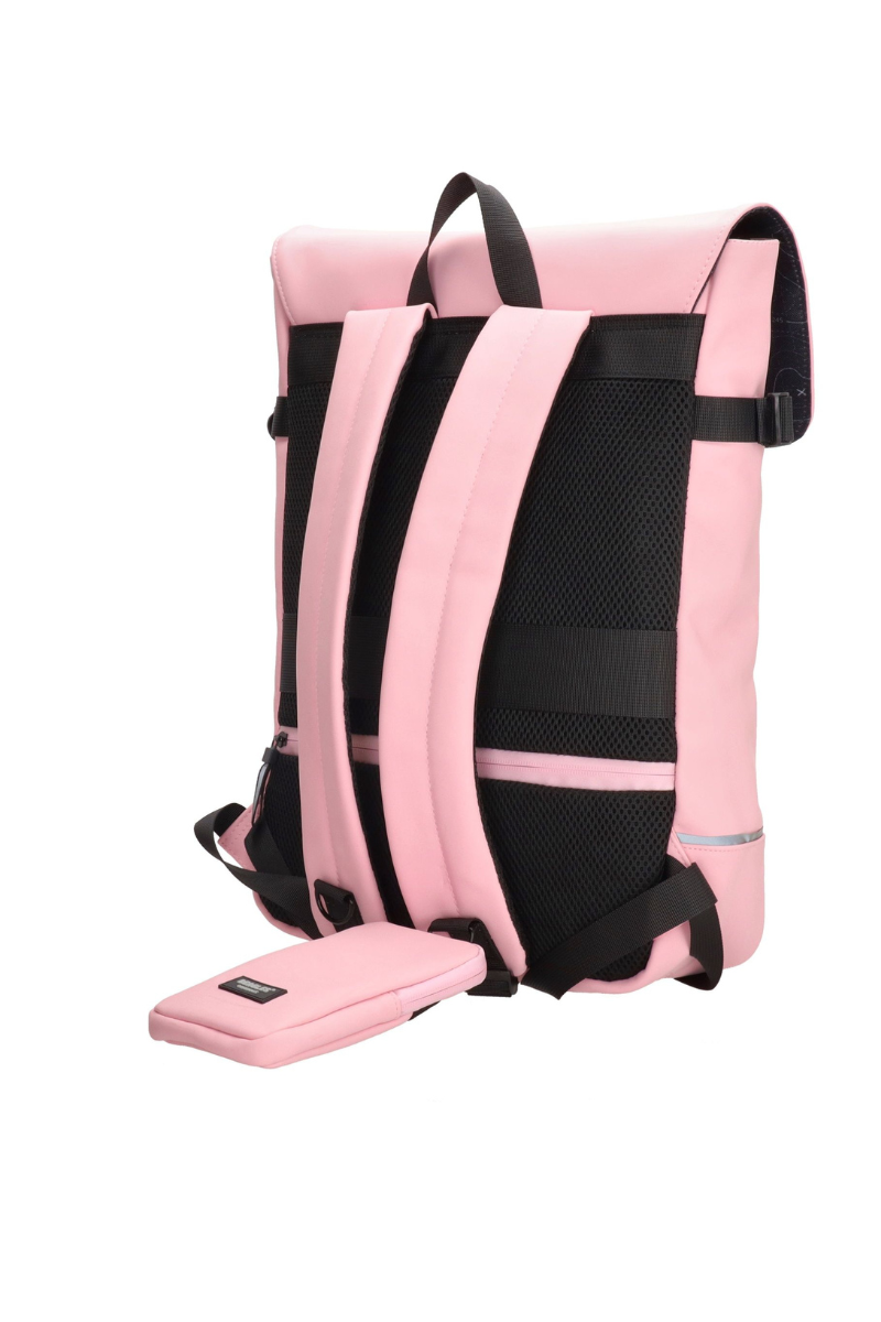 Stilingoje šviesiai rožinėje vandeniui atsparioje kuprinėje telpa viskas, ko reikia visai dienai.Kuprinėje yra atskiras didesnis nešiojamojo kompiuterio skyrius ir mažesni skyriai, į kuriuos galima sudėti tai, ko reikia.
