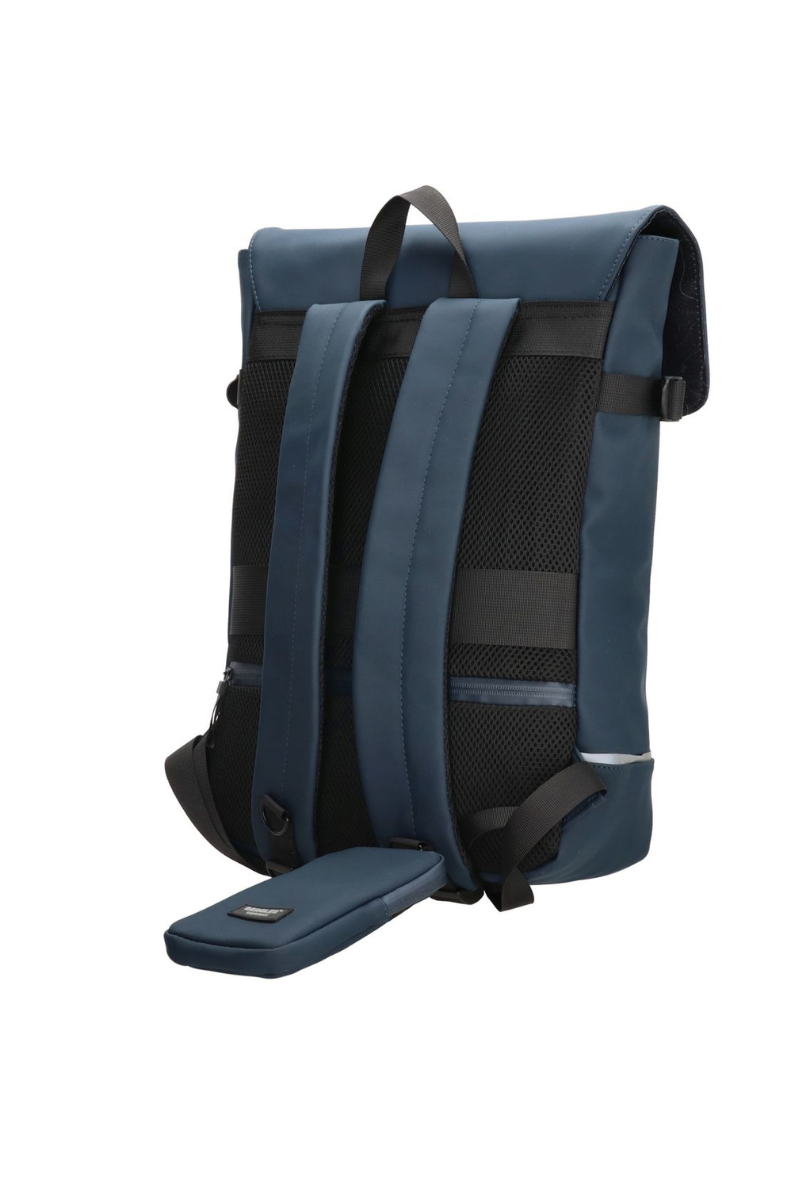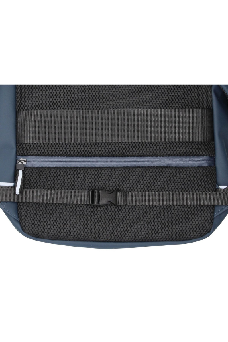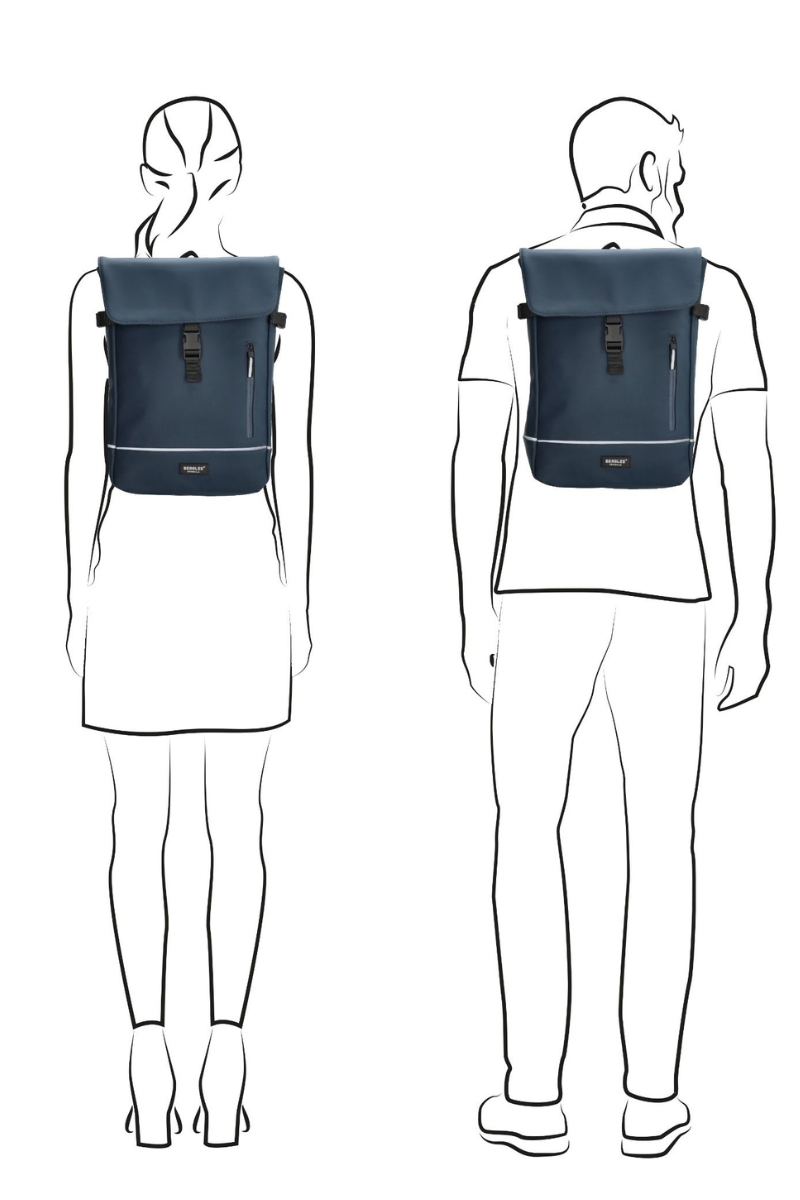 Stilingoje tamsiai mėlynoje neperšlampamoje kuprinėje pakanka vietos viskam, ko reikia visai dienai.Kuprinėje yra atskiras didesnis nešiojamojo kompiuterio skyrius ir mažesni skyriai reikalingiems daiktams susidėti.Kuprinė yra unisex modelis – tinka ir vyrams, ir moterims.