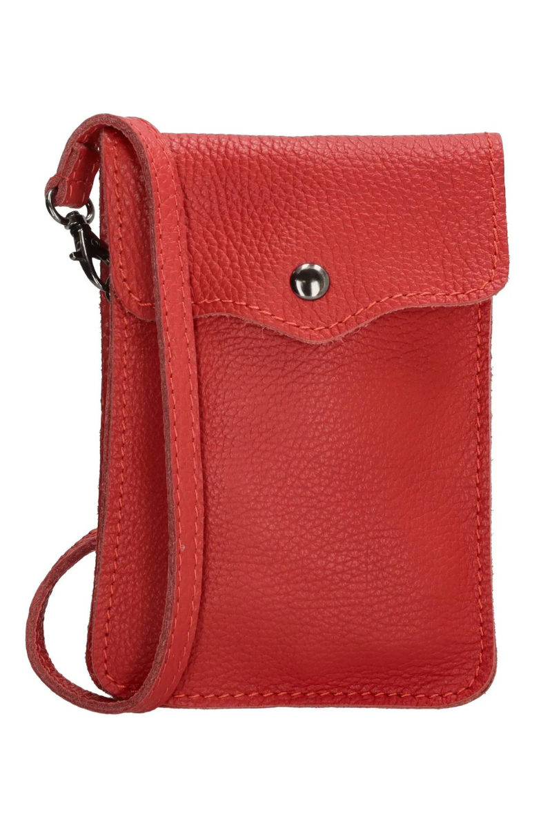 CHARM LONDON natūralios odos krepšys mobiliajam telefonui braškių raudonumo spalvos – NAUDOJAMA