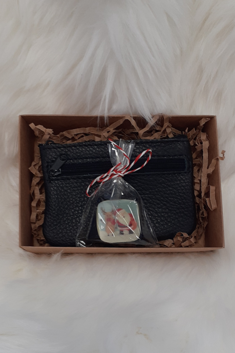 Dovanų rinkinys- Charm London natūralios odos raktų pakabukas piniginė Chocelite Estonian handmade chocolate commem- SOON IN STOCK-READER NOW