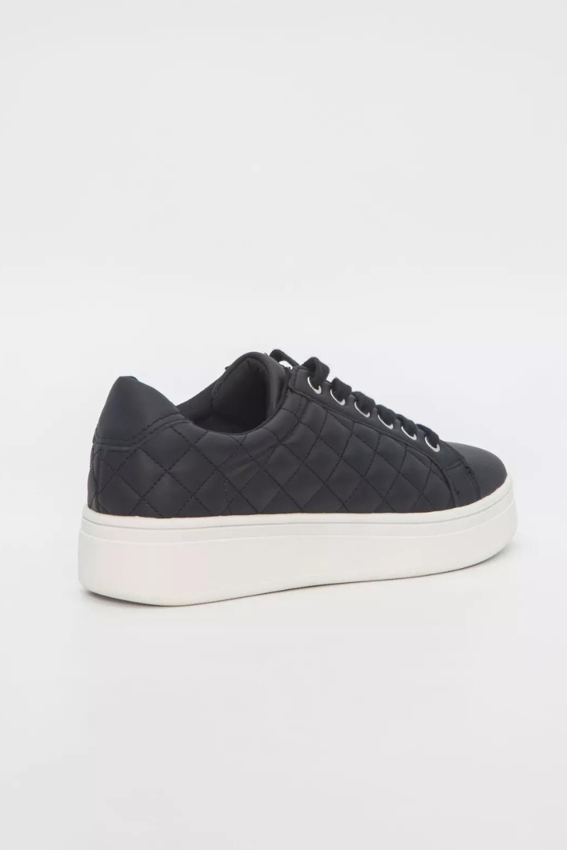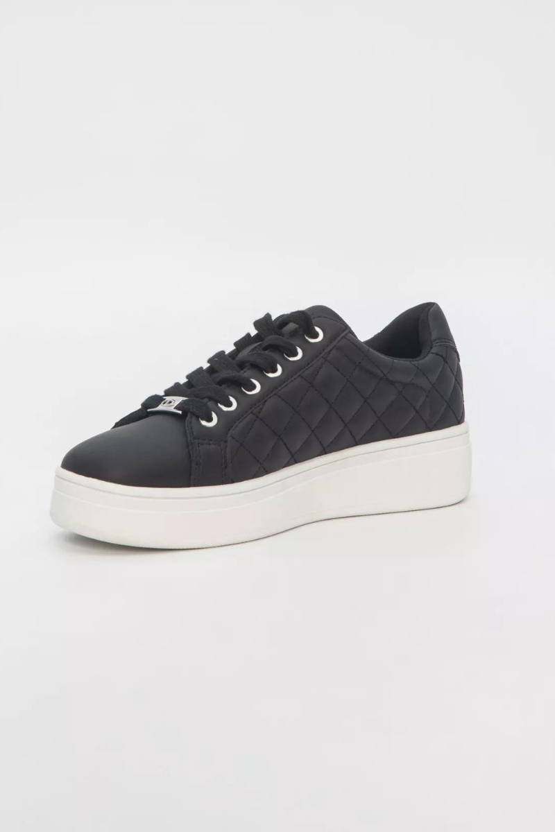 Juodi dygsniuoti moteriški sportbačiai storesniu padu – puiki avalynė pavasarį, vasarą ir rudenį.