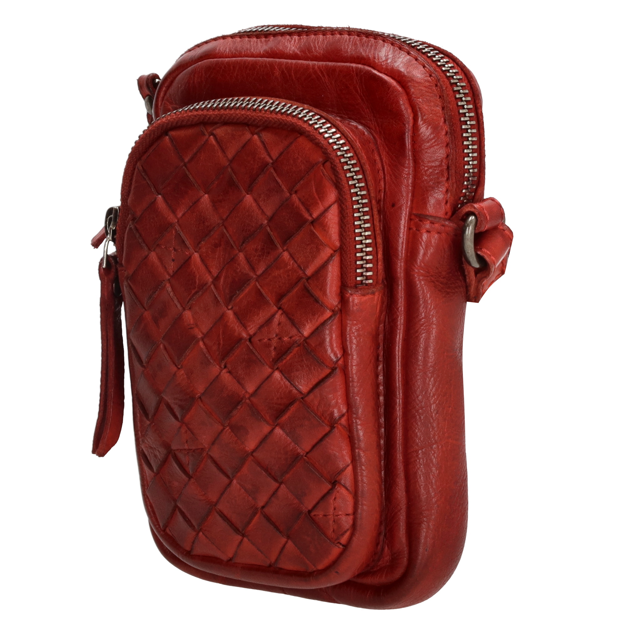 CHARM LONDON natūralios odos krepšys mobiliajam telefonui braškių raudonumo spalvos – NAUDOJAMA