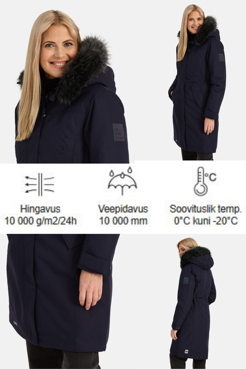 Vienna parka yra iki šlaunų – žemesnėms moterims ji krenta virš kelių, o priekyje yra su paltu. Tikslų ilgį rasite matmenų lentelėje (priekio ir nugaros ilgis nurodytas atskirai), kad galėtumėte pasirinkti jums tinkamą dydį.