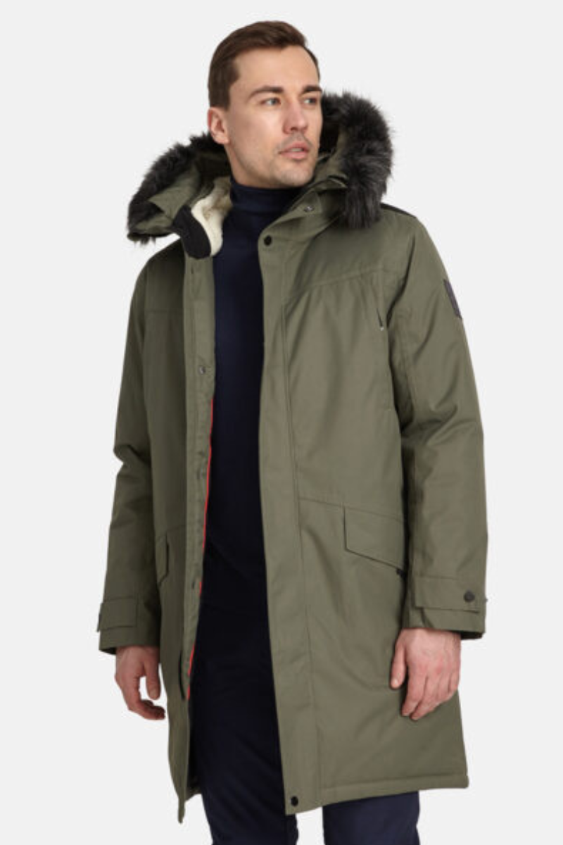 Stilinga ir šilta rudens-žiemos sezonui skirta vyriška žieminė striukė, gero ilgio ir tvirto kirpimo.