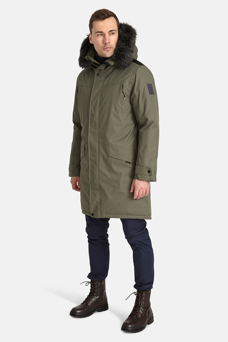 Stilinga ir šilta rudens-žiemos sezonui skirta vyriška žieminė striukė, gero ilgio ir tvirto kirpimo.