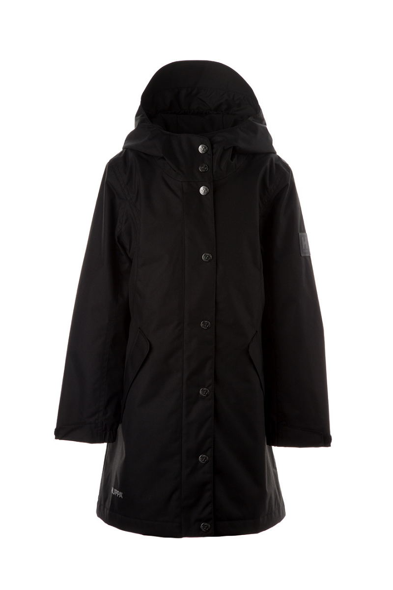 HUPPA juoda mergaičių lietaus ir vėjo nepraleidžianti pavasario-rudens striukė 40 gr su apšiltinimu – NAUJAI IŠPARDAVIME