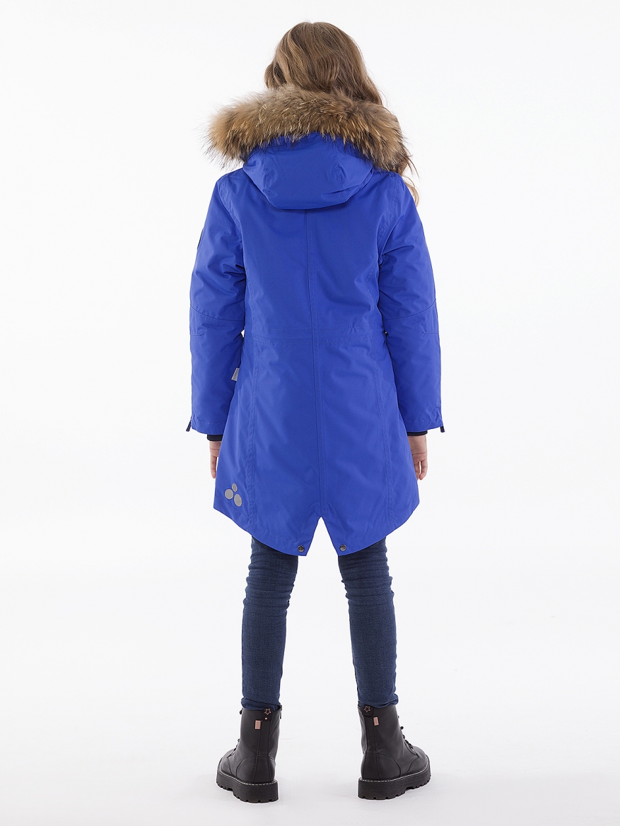 Vaikiška žieminė striukė Vivian nepraleidžia vėjo ir vandens, o kvėpuojantis išorinis audinys pasižymi geriausiomis techninėmis savybėmis.Striukės izoliacija yra 200 g. Minkštas kailinis pamušalas yra jaukus ir šiltas. Parka turi briaunuotus vidinius rankovių rankogalius ir užklijuotas siūles, kad net sportuojant būtų šilta ir sausa. Kad tamsoje būtų geriau matoma, yra šviesą atspindinčių detalių. Gaubto natūralaus kailio apdaila užsegama sagtimi ir lengvai nuimama. Priekinė kišenė ir rankovės užsegamos užtrauktuku, o liemuo reguliuojamas iš vidaus. Dviejų didžiųjų pagrindinių kišenių atvartai užsegami magnetiniu užraktu. Taip pat yra vidinė užtrauktuku užsegama kišenė, kurioje galite laikyti telefoną ar kitus smulkius daiktus. Priekinis striukės atvartas atsidaro du kartus, todėl sėdėti su striuke yra patogiau. Madinga šilta žieminė striukė žiemos sezonui.