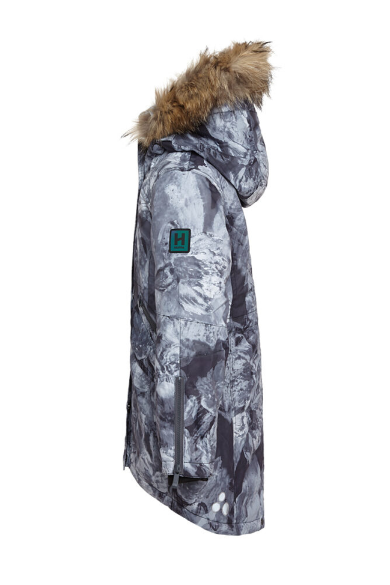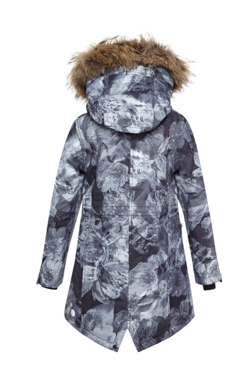 Vaikiška žieminė striukė Vivian nepraleidžia vėjo ir vandens, o kvėpuojantis išorinis audinys pasižymi geriausiomis techninėmis savybėmis.Striukės izoliacija yra 200 g. Minkštas kailinis pamušalas yra jaukus ir šiltas. Parka turi briaunuotus vidinius rankovių rankogalius ir užklijuotas siūles, kad net sportuojant būtų šilta ir sausa. Kad tamsoje būtų geriau matoma, yra šviesą atspindinčių detalių. Gaubto natūralaus kailio apdaila užsegama sagtimi ir lengvai nuimama. Priekinė kišenė ir rankovės užsegamos užtrauktuku, o liemuo reguliuojamas iš vidaus. Dviejų didžiųjų pagrindinių kišenių atvartai užsegami magnetiniu užraktu. Taip pat yra vidinė užtrauktuku užsegama kišenė, kurioje galite laikyti telefoną ar kitus smulkius daiktus. Priekinis striukės atvartas atsidaro du kartus, todėl sėdėti su striuke yra patogiau. Madinga šilta žieminė striukė žiemos sezonui.