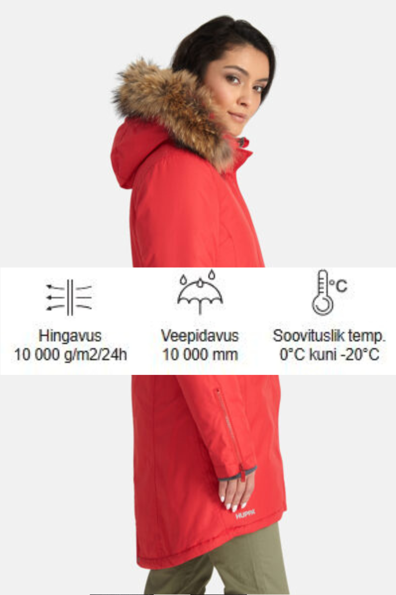 HUPPA moteriška žieminė striukė Vivian raudona su NATURAL FABRIC 200 gr apšiltinta-KAI KURIAME LENGVAI