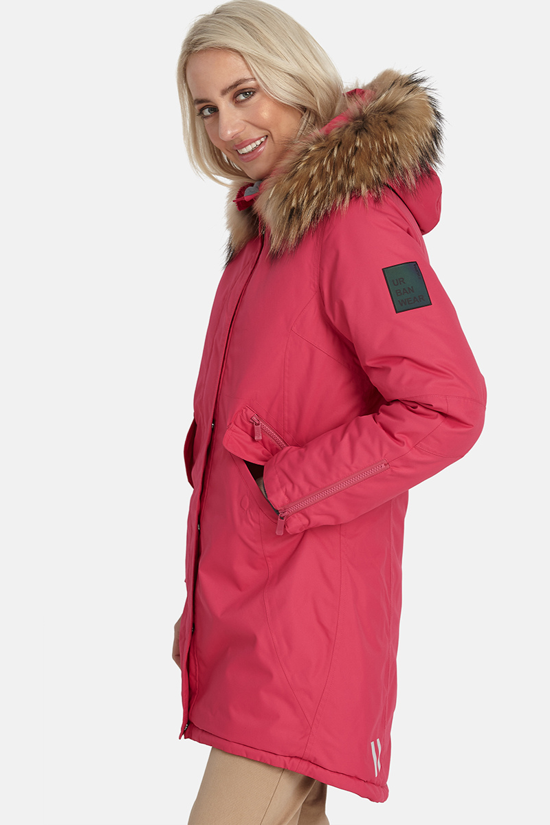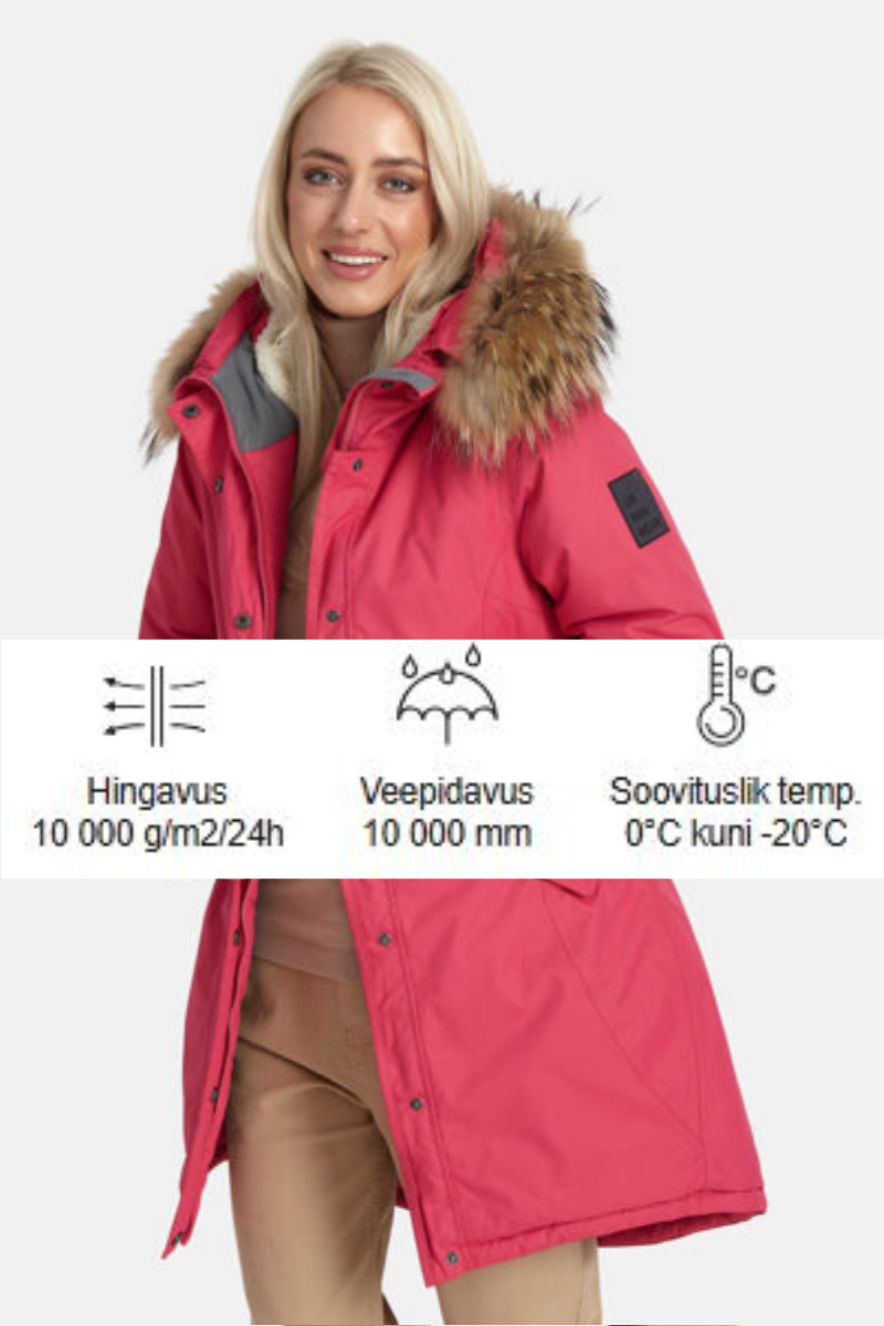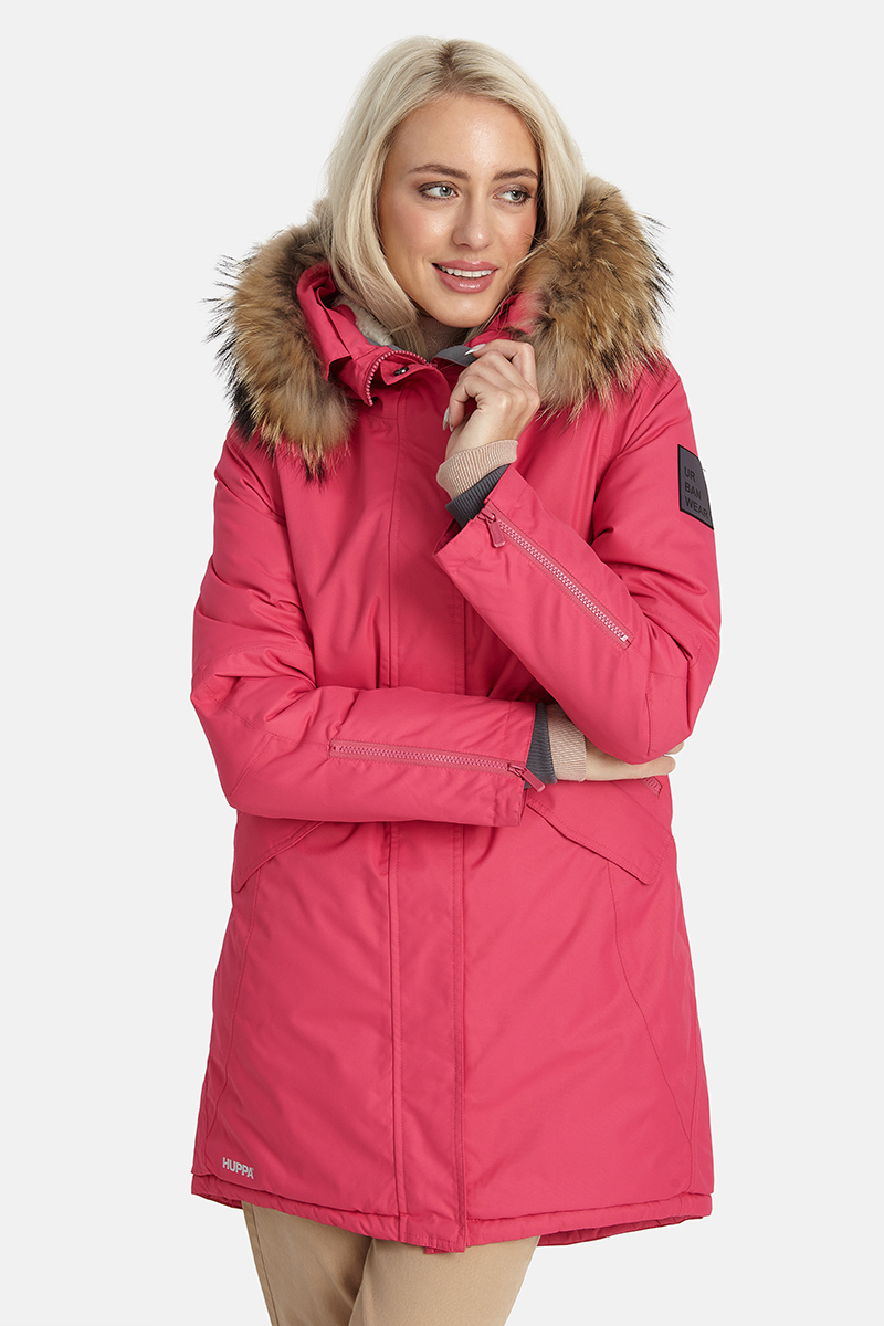 Huppa moteriška žieminė striukė Vivian su fuksijų rožine spalva iš natūralaus plauko 200 gr apšiltinta, atspari vėjui ir lietui – beveik nebėra sandėlyje paskutinė sandėlyje