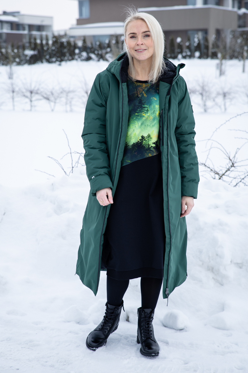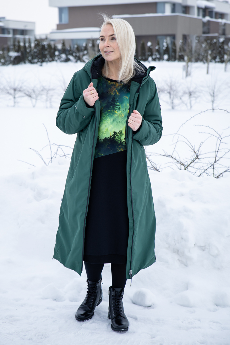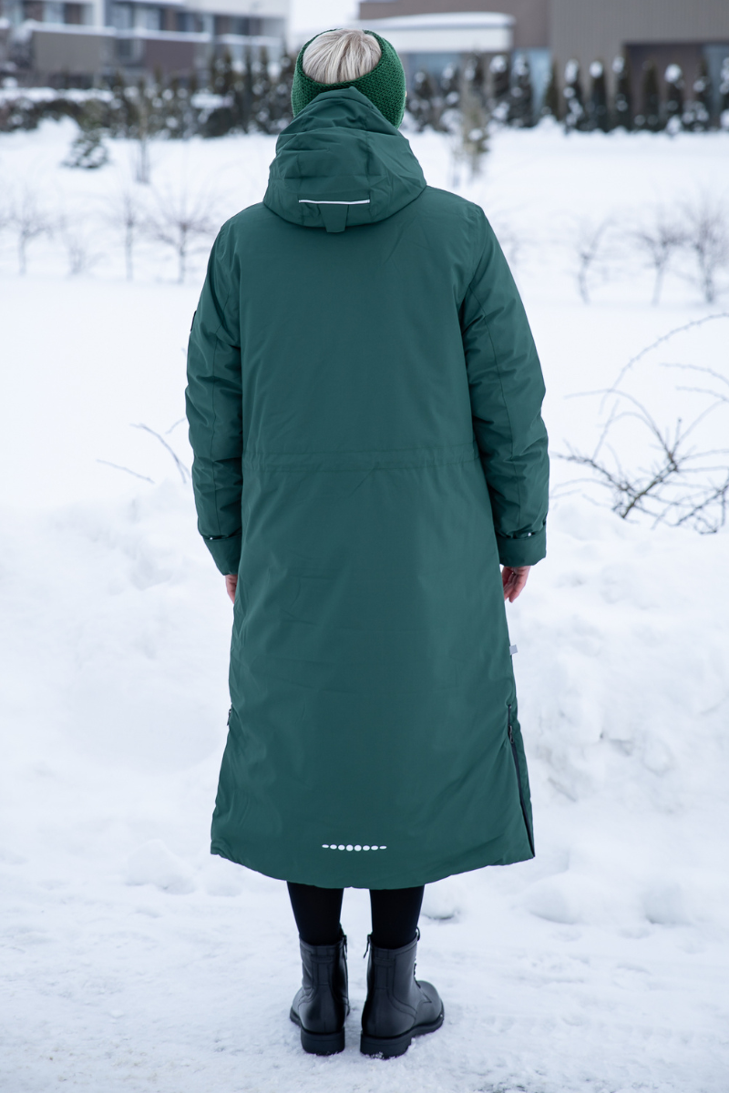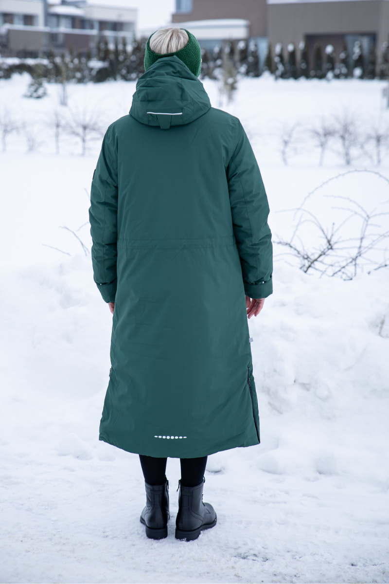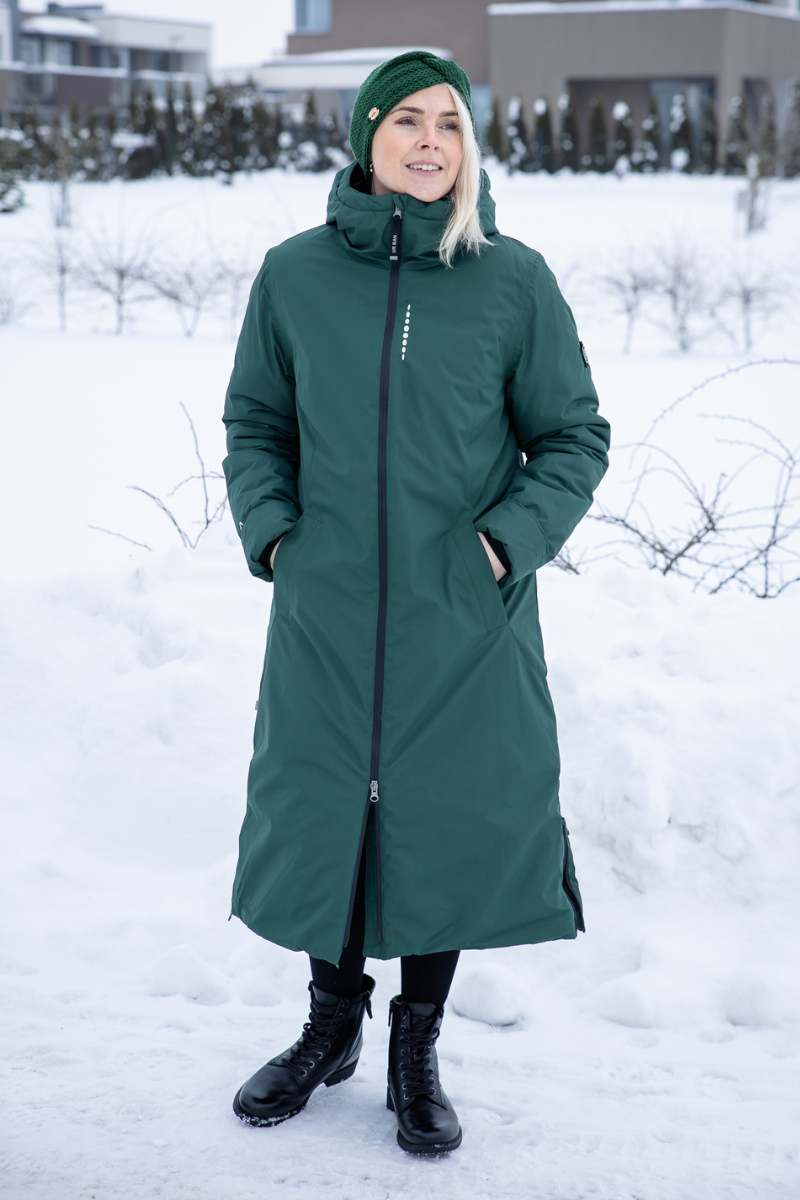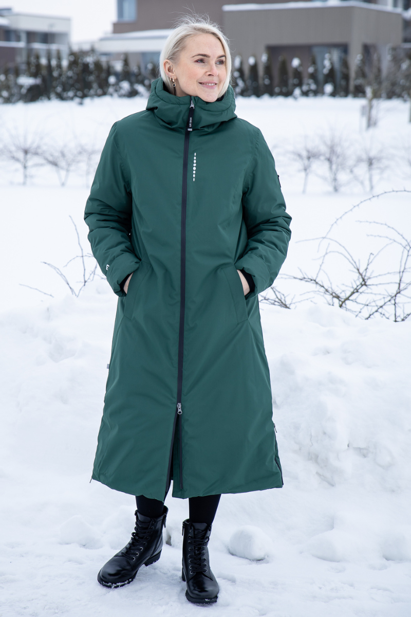 Ilgas ir funkcionalus moteriškas žieminis paltas estiškai žiemai