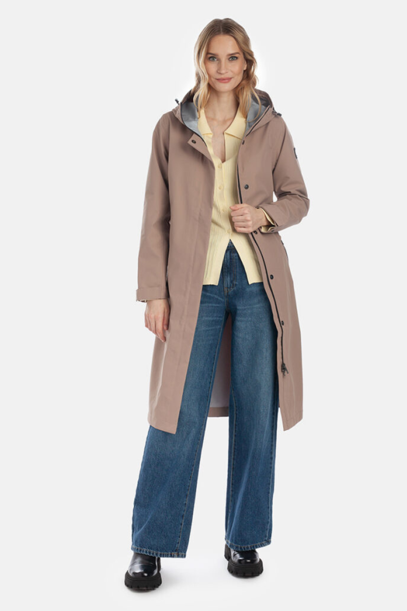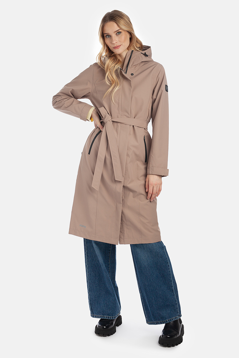 Šis vandeniui ir vėjui atsparus moteriškas paltas puikiai tinka dėvėti pavasarį, vasarą ir rudenį. Audinys pralaidus orui, lengvas ir atsparus UV spinduliams.