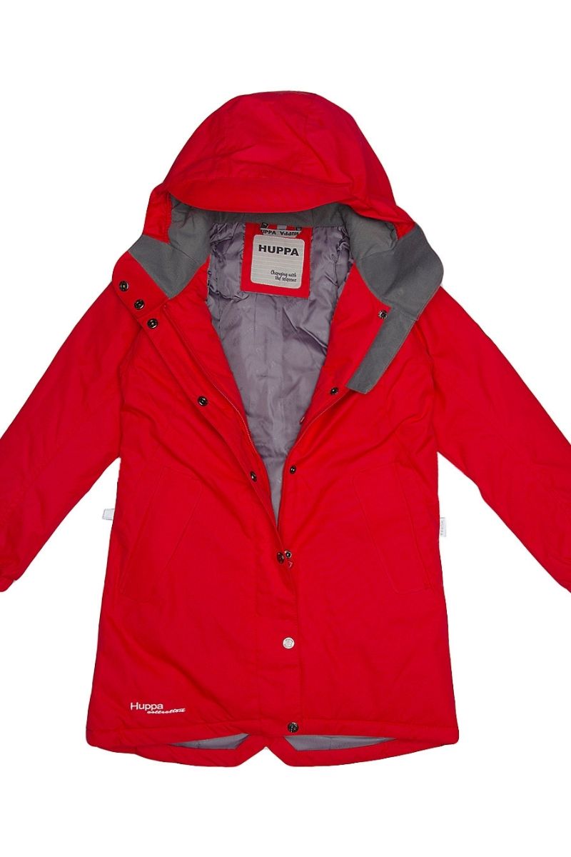 HUPPA raudona mergaičių lietaus ir vėjo nepraleidžianti pavasario-rudens striukė 40 gr su apšiltinimu – NAUJIENOS!