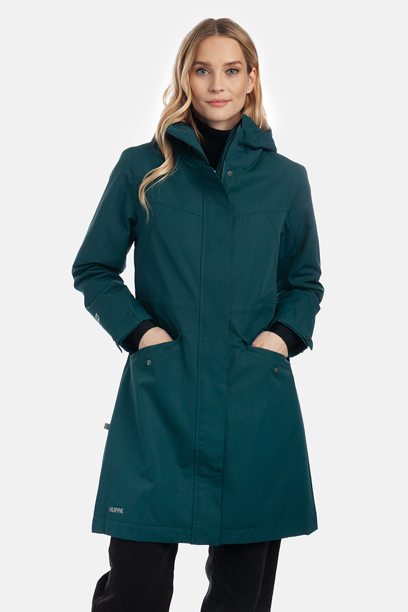100 g izoliacija ir aukštos kokybės parka audinys išlaiko šilumą, tačiau parka yra lengva. Reguliuojama juosmens juosta su raišteliu užtikrina, kad ji puikiai tiks kiekvienai figūrai. Dėl priekyje į dvi puses atidaromo užsegimo moteriška parka “HUPPA Minna” yra patogi sėdint ar važiuojant.