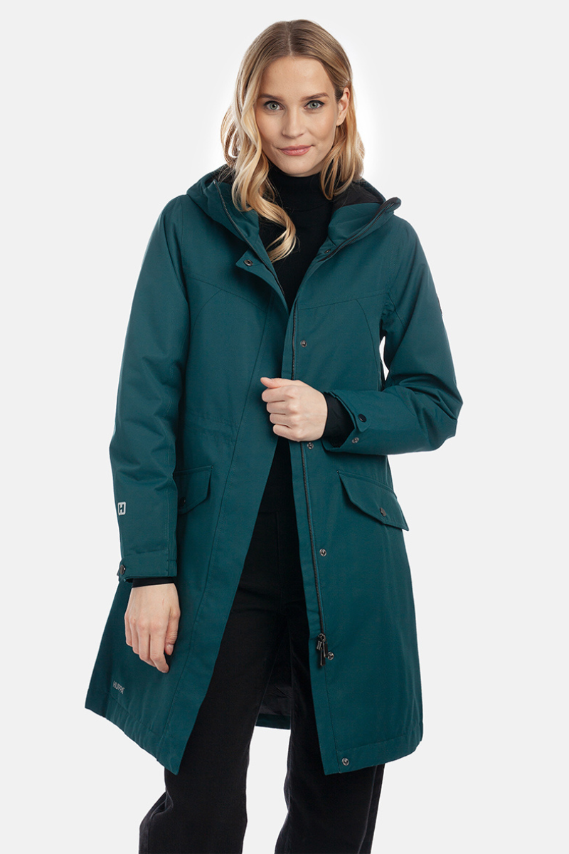 100 g izoliacija ir aukštos kokybės parka audinys išlaiko šilumą, tačiau parka yra lengva. Reguliuojama juosmens juosta su raišteliu užtikrina, kad ji puikiai tiks kiekvienai figūrai. Dėl priekyje į dvi puses atidaromo užsegimo moteriška parka “HUPPA Minna” yra patogi sėdint ar važiuojant.