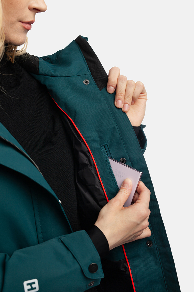 Elastinga vidinė pusė, kad puikiai priglustų. Reguliuojamas gobtuvas ir šilti rankovių rankogaliai užtikrina maksimalų komfortą ir šilumą.
