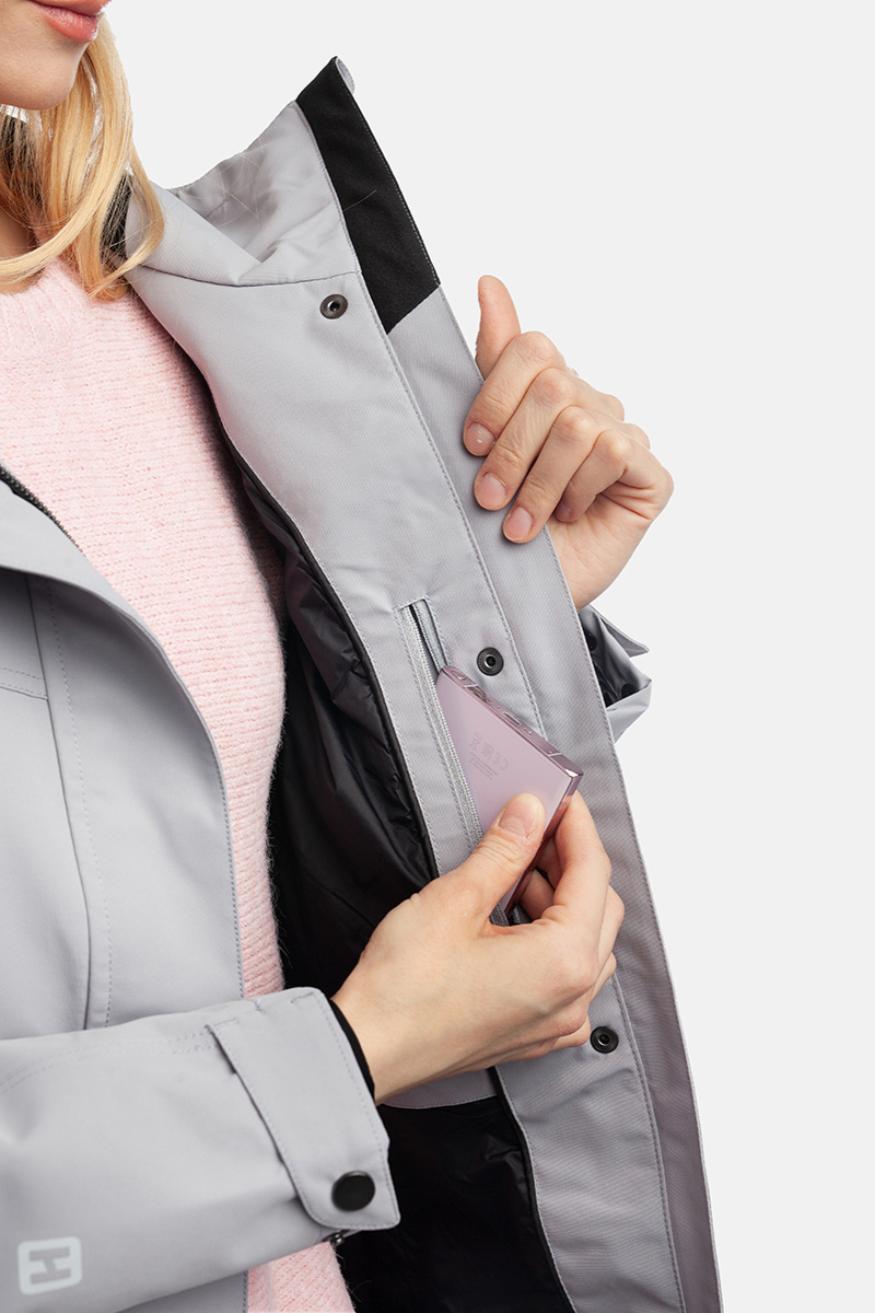 ✔ Vandeniui atsparios lipnios siūlės – apsaugo nuo drėgmės aplink rankas, kaklo ir gobtuvo