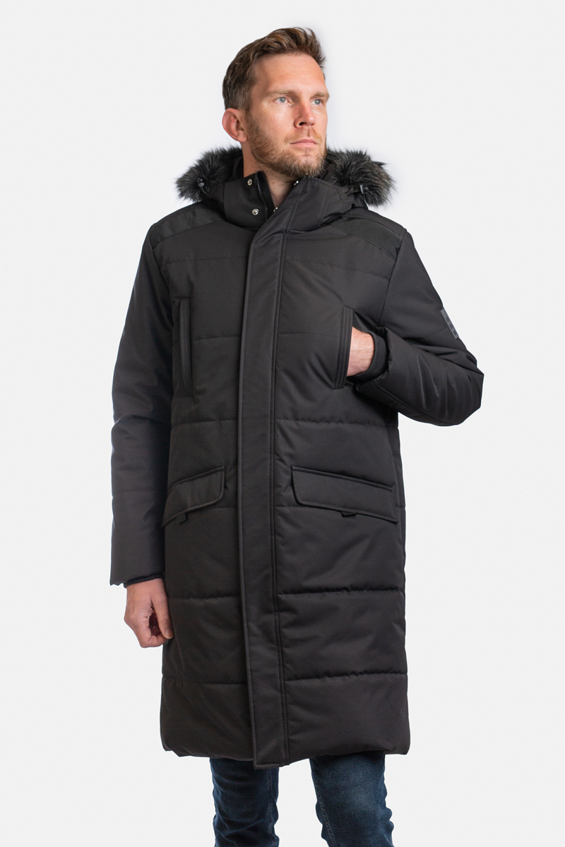 Vyriška vandeniui ir vėjui atspari žieminė striukė su 200 g izoliacija. Ši parka sujungia šilumą, funkcionalumą ir modernų dizainą. Krūtinės kišenės užsegamos užtrauktukais, o priekyje yra kišenės su magnetiniais užtrauktukais. Kapišonas su nuimamu dirbtinio kailio apdaru suteikia universalumo ir lengvos priežiūros. Audinyje taip pat yra šviesą atspindinčių detalių, kad būtų geriau matomas tamsoje.