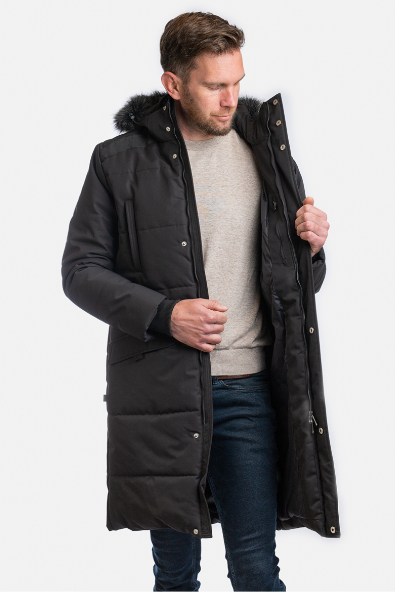 Vyriška vandeniui ir vėjui atspari žieminė striukė su 200 g izoliacija. Ši parka sujungia šilumą, funkcionalumą ir modernų dizainą. Krūtinės kišenės užsegamos užtrauktukais, o priekyje yra kišenės su magnetiniais užtrauktukais. Kapišonas su nuimamu dirbtinio kailio apdaru suteikia universalumo ir lengvos priežiūros. Audinyje taip pat yra šviesą atspindinčių detalių, kad būtų geriau matomas tamsoje.