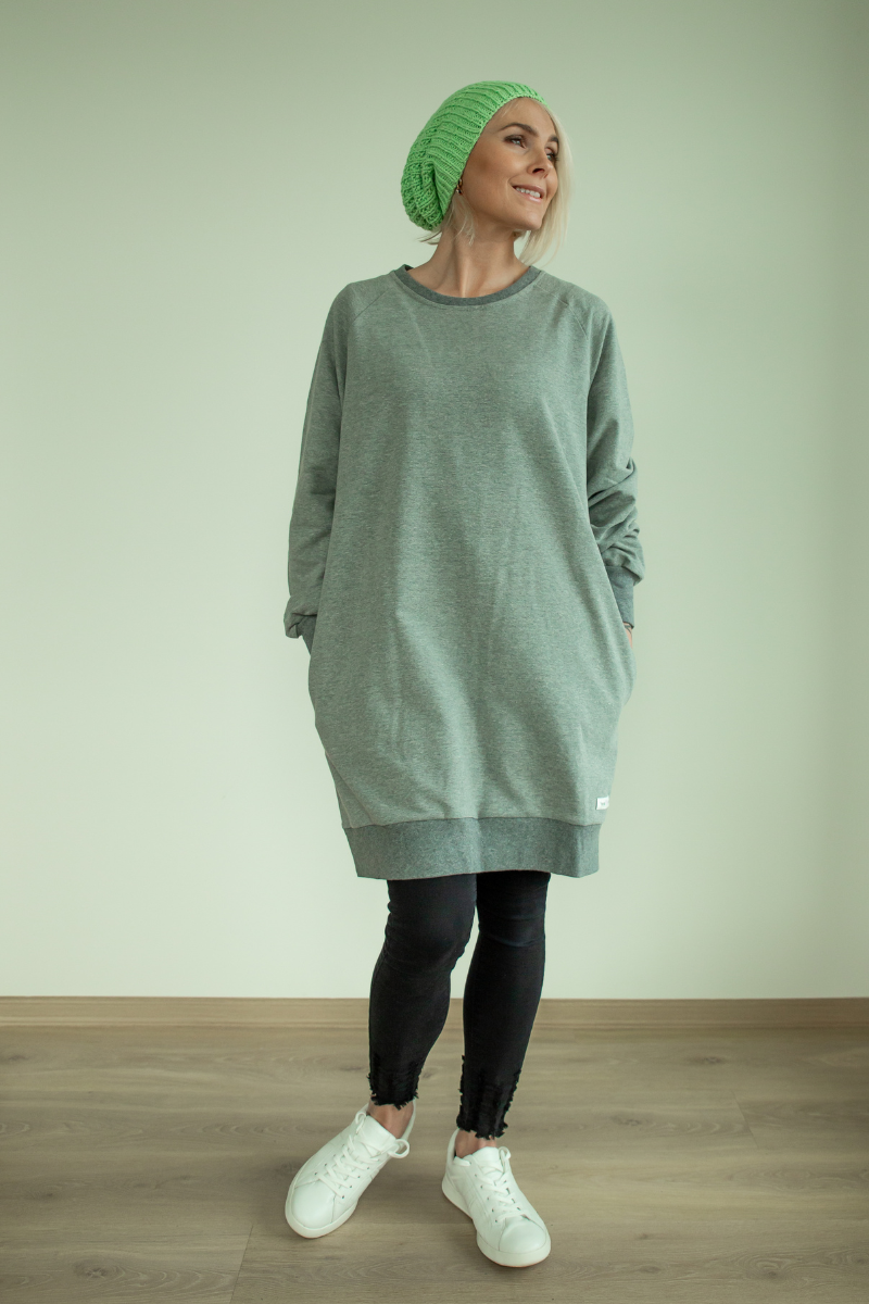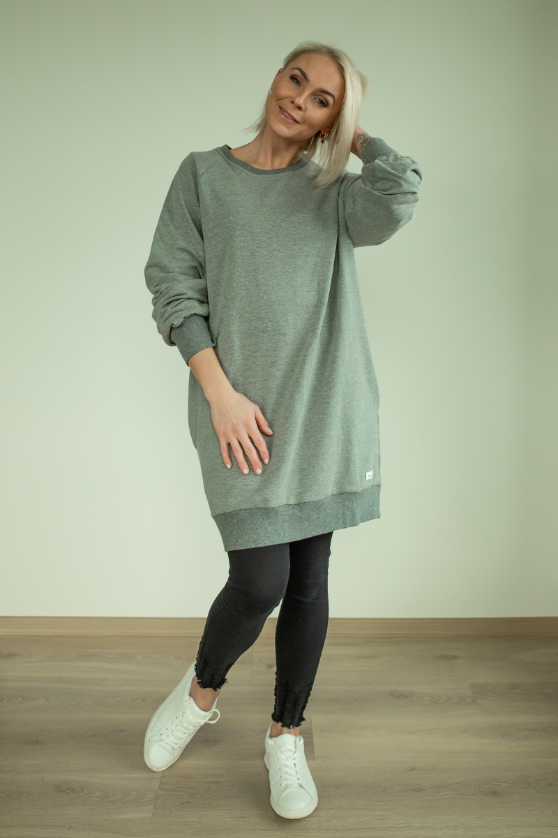 Ilgesnis kirpimas gražiai dengia klubus ir puikiai tinka prie kelnių ir megztinių. Žemesnio ūgio moterims ši palaidinė taip pat puikiai tinka dėvėti kaip suknelė.
