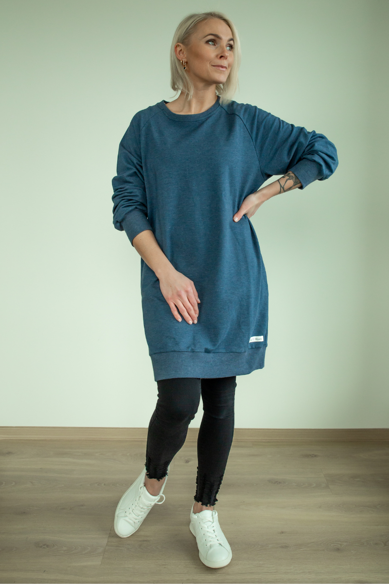 Ilgesnis kirpimas gražiai dengia klubus ir puikiai tinka prie kelnių ir megztinių. Žemesnio ūgio moterims ši palaidinė taip pat puikiai tinka dėvėti kaip suknelė.