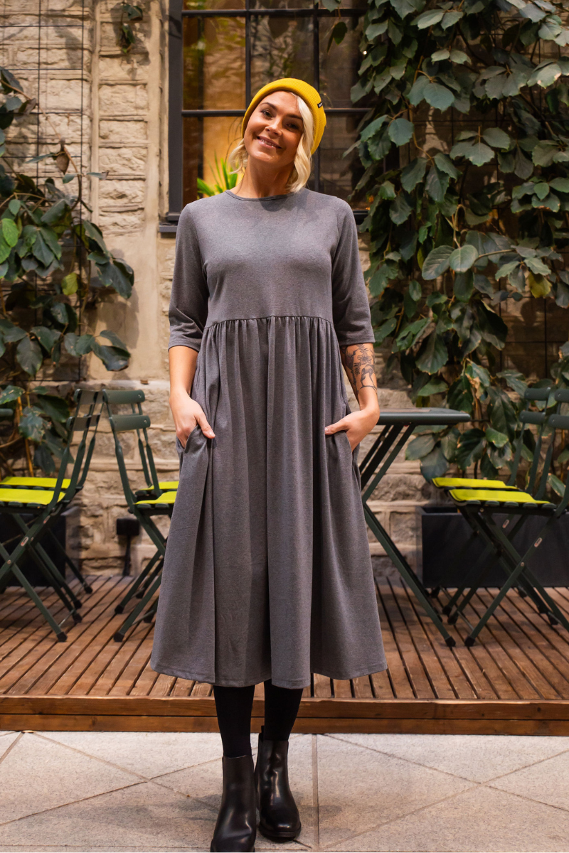 Miela tamsiai pilka suknelė su kišenėmis Pille – netrukus bus sandėlyje paskutinis dydis M(38-40)