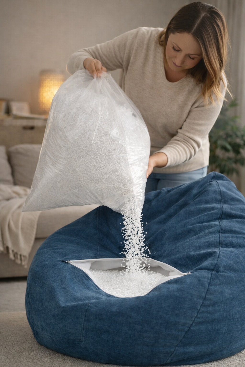 Įdėkite užpildo, sureguliuokite patogumą ir vėl mėgaukitės patogiu sėdėjimu – tereikia vieno maišo užpildo 😊.