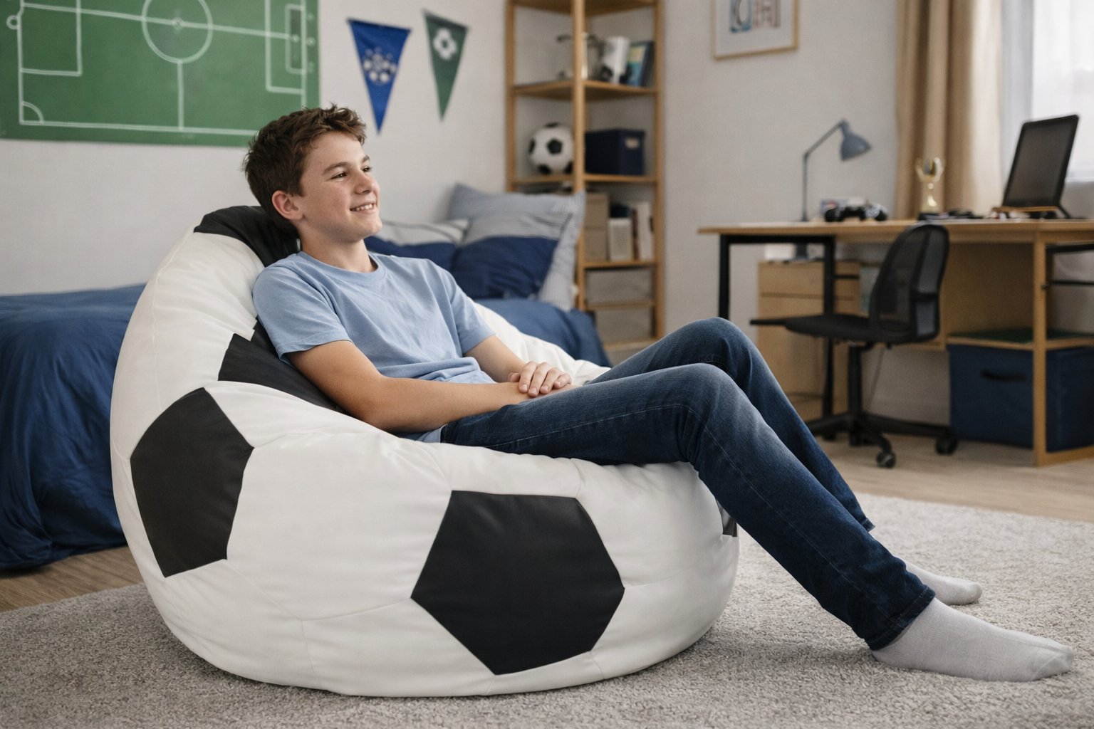 Futbolo krepšys-kėdė pagamintas iš tradicinės minkštos odos, kuri visur pasiteisino – tinka naudoti patalpose ir lauke, vandenyje ir sunkiai, ją labai lengva valyti drėgnu skudurėliu.Dėl savo elastingos vidinės struktūros ji yra viena geriausių krepšiams-kėdėms skirtų užvalkalų medžiagų, tiksliai prisitaikanti prie naudotojo kūno formų.