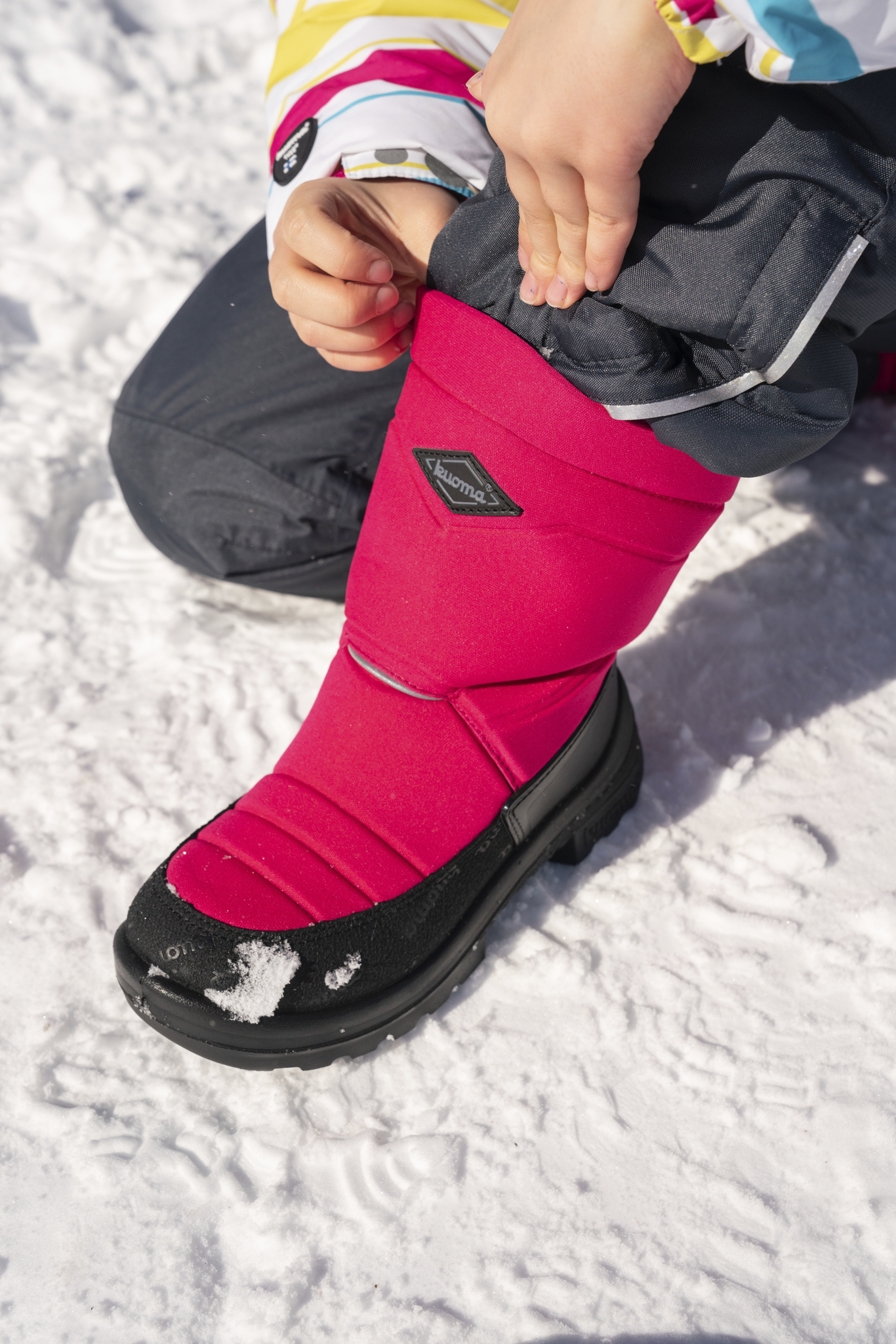 Šilti ir lengvi suomių avalynės prekės ženklo “Kuoma” vaikiški žieminiai batai užtikrins, kad jautrioms vaiko pėdutėms visada būtų jauku ir šilta. Šie batai tinka kasdieniam nešiojimui žiemišku oru ir atlaiko iki -30ºC šaltį. Viršutinis batų paviršius pagamintas iš odos ir tekstilės, kuri nepraleidžia vandens ir purvo, todėl yra patvari. Vidinis pamušalas ir vidpadis pagaminti iš tikros avies vilnos. Raštuotas išorinis padas užtikrina gerą sukibimą net ir esant slidžiam orui. Priekyje ir gale yra šviesą atspindinčios detalės, kad vaikas būtų matomas tamsoje.