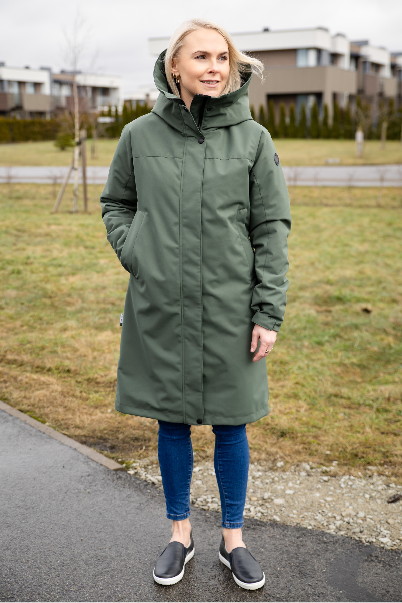 Aukštųjų technologijų “Active” audinys turi neperšlampamą membraną, kuri neleidžia vandeniui patekti į gaminio vidų, o drėgmė iš gaminio vidaus gali išgaruoti.Idealiai tinka moterims pavasario-rudens darbui ir laisvalaikiui.
