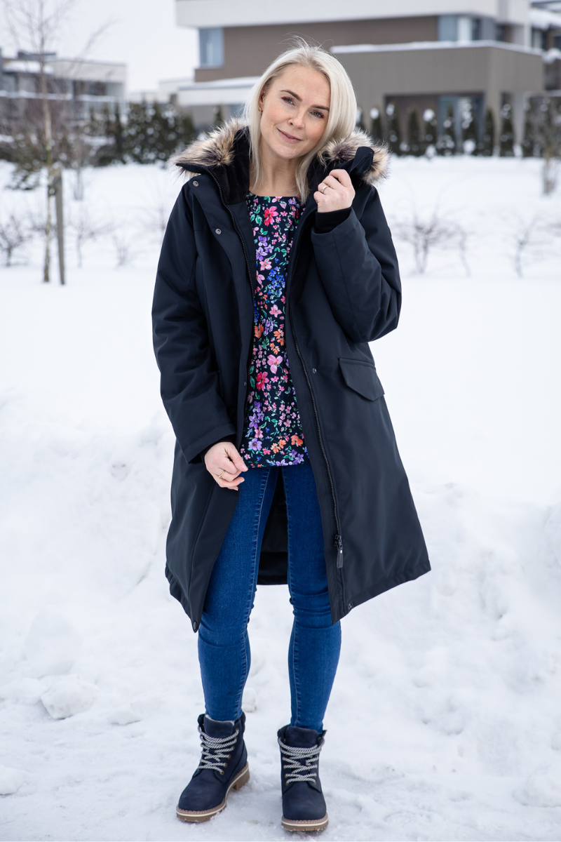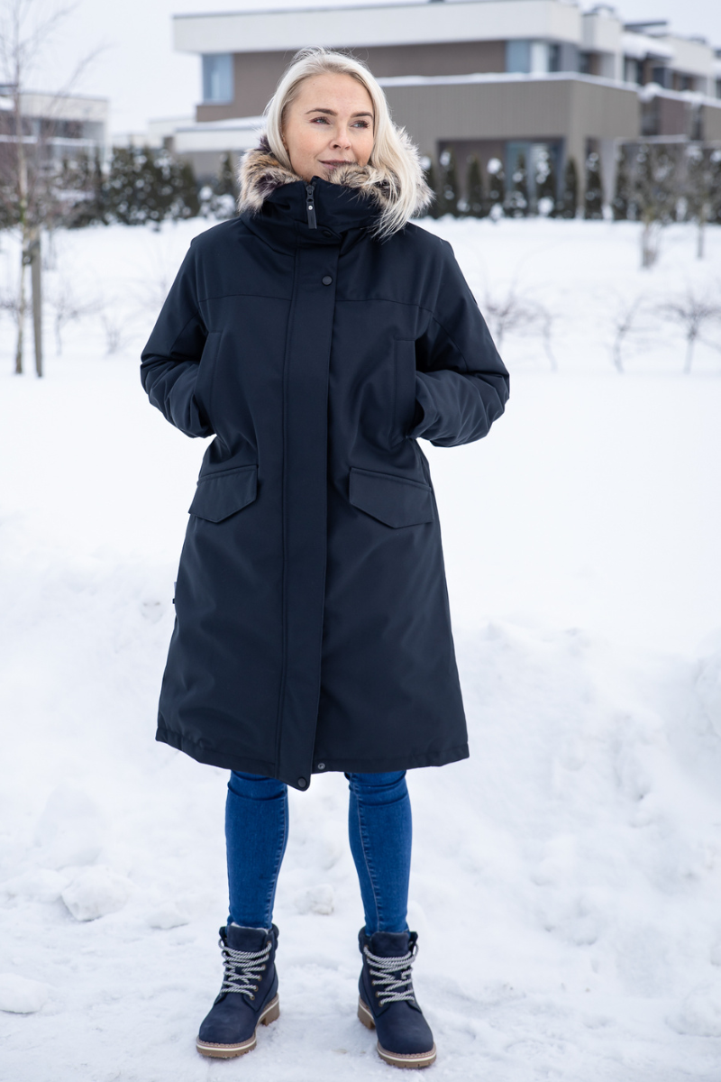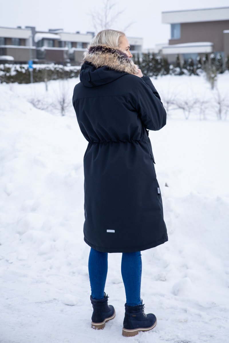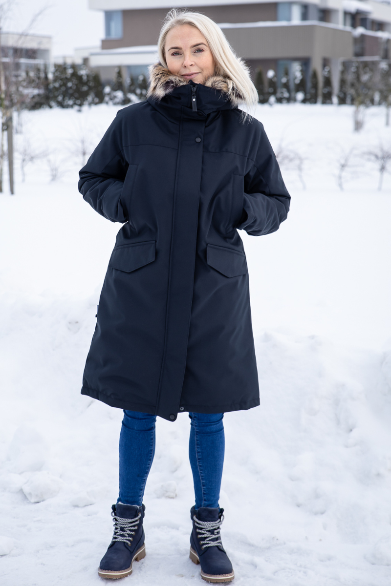 LENNE Carmen parka yra moteriško kirpimo. Reguliuojamas liemuo su užtrauktuku leidžia užsegti parką ties liemeniu arba nešioti tiesiai – taip, kaip jums patinka.