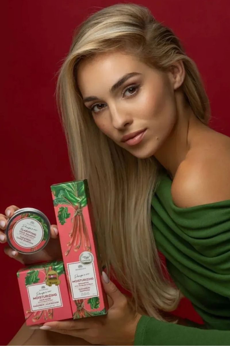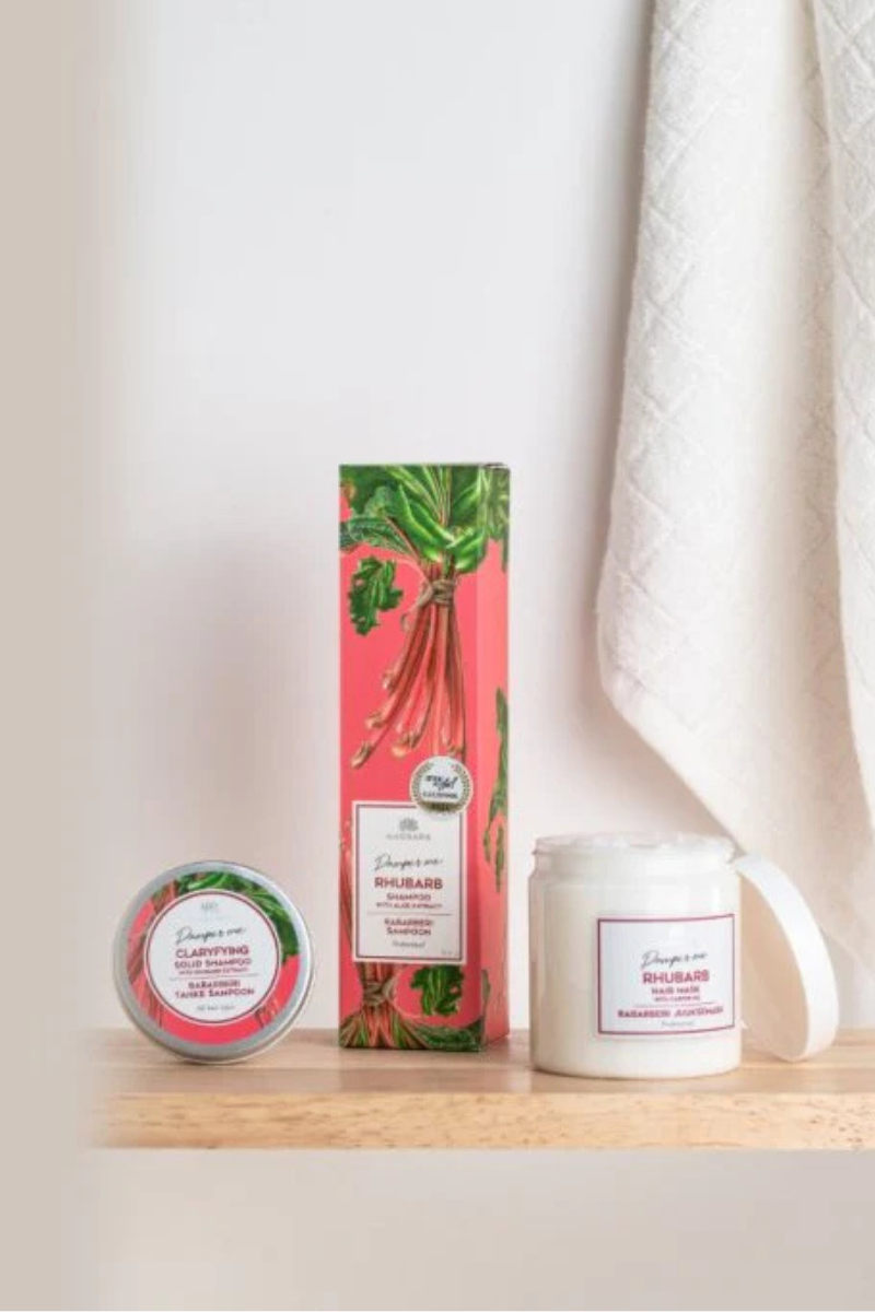 Drėkinamasis natūralus šampūnas sausiems ir pažeistiems plaukams su sultingu rabarbarų aromatu.