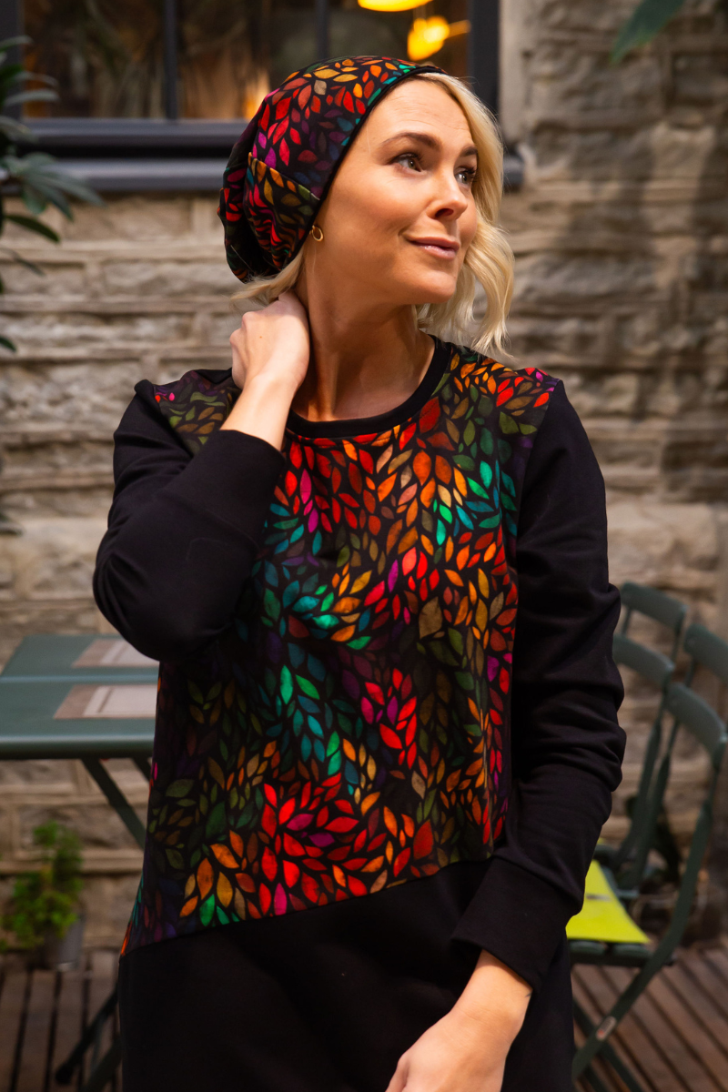 Kepurę galima dėvėti dviem būdais – raštuota arba vienspalve puse.