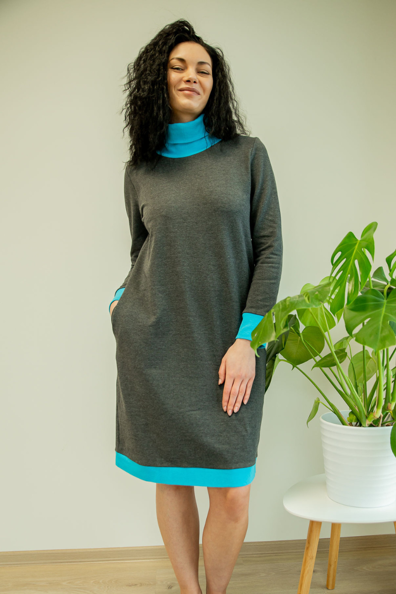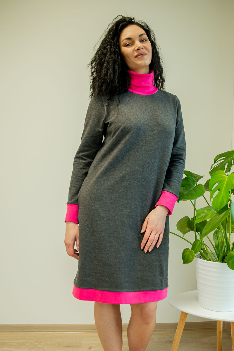 Patogi tamsiai pilkos spalvos palaidinė su kišenėmis ir aukštu kaklu Fuksia – yra sandėlyje M(38-40) – DIDELĖ KAINA