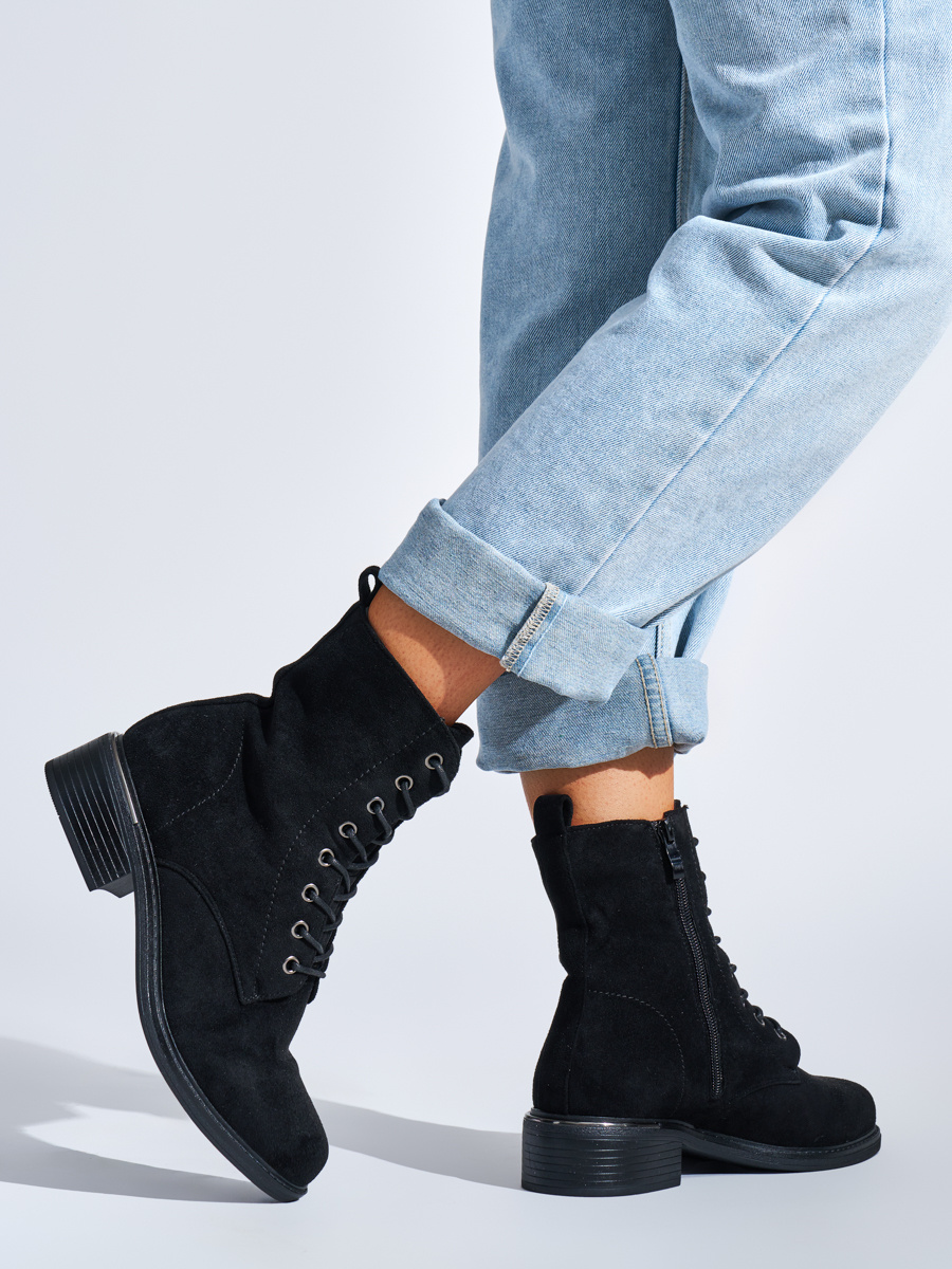 Patogūs dirbtinės zomšos batai storesniu padu puikiai tinka rudens ir žiemos sezonui.