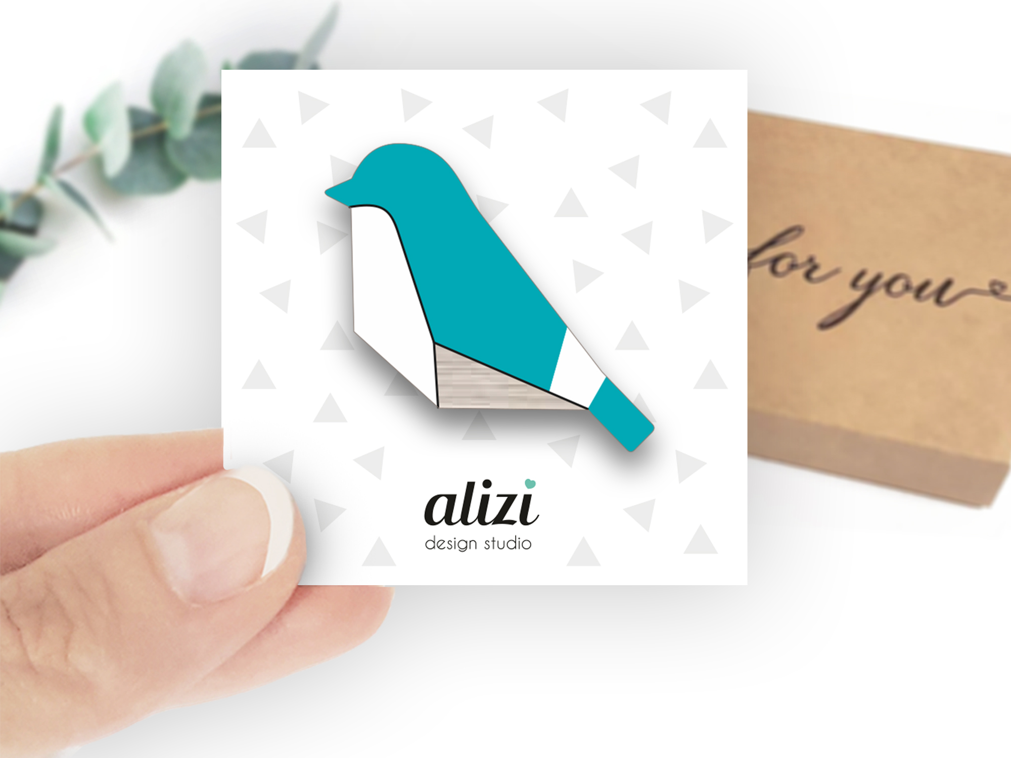 Brošiūra supakuota į gražią rudą kartoninę dėžutę, kuri atsidaro degtukų dėžutės principu, o viršuje yra užrašas Jums – tai graži ir įsimintina dovana, kuri primins apie Jus kaskart, kai dovanos gavėjas nešios dovanų gautą gražų papuošalą.