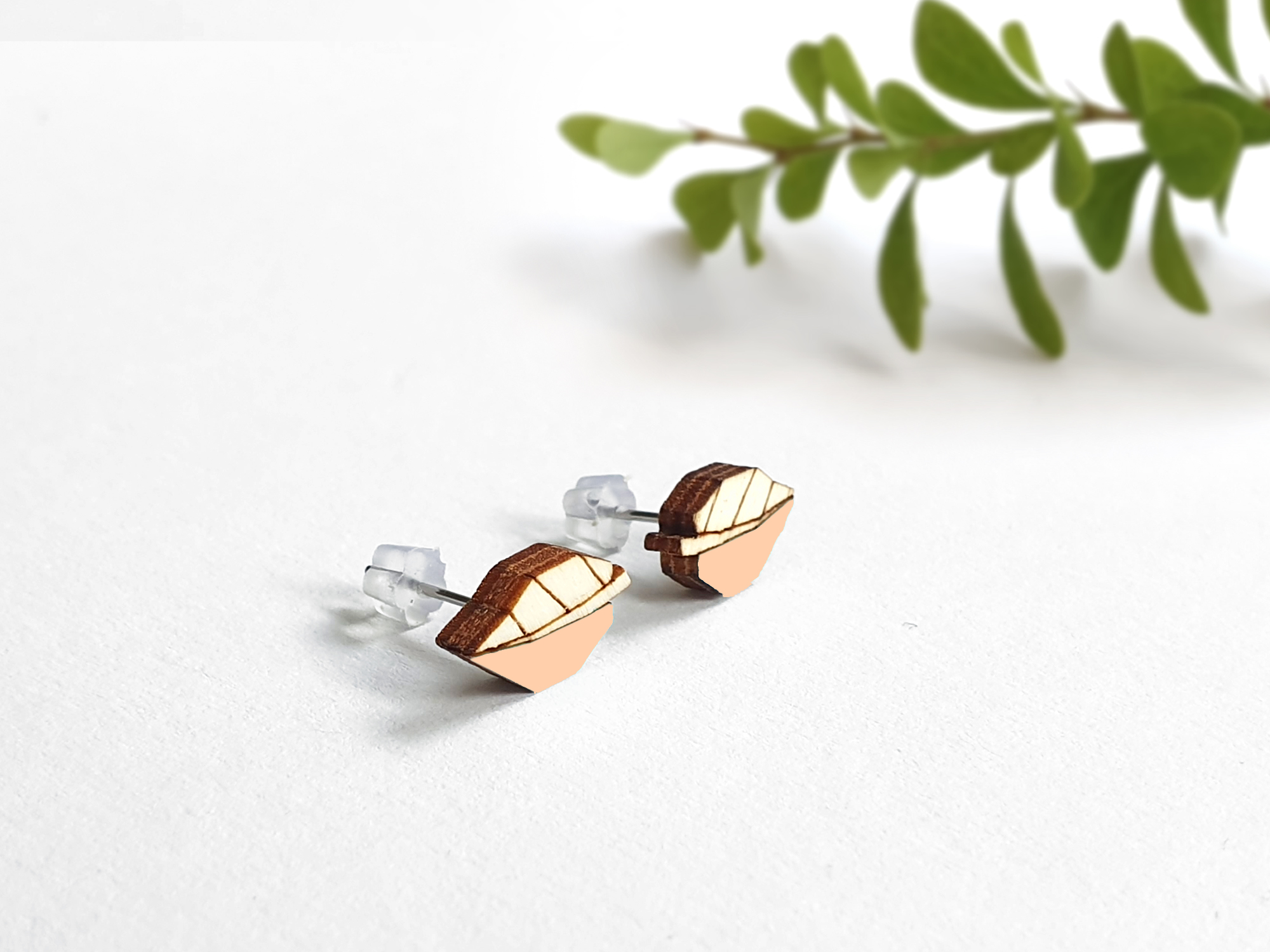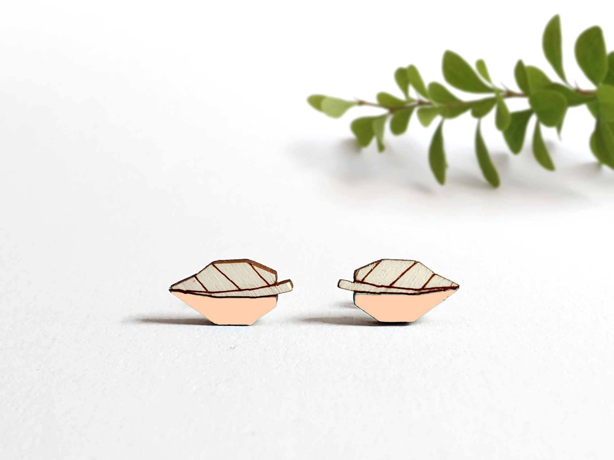 Rankų darbo mediniai auskarai “Leaves apricot-pink”-GALIMA IŠPARDUOTI-MOKĖTI