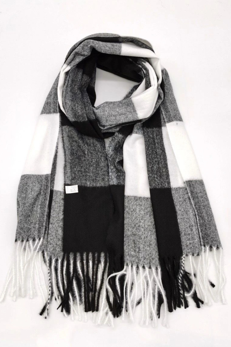 Šiltas įvairiaspalvis juodos ir pilkos spalvų rudens-žiemos šalikas – NAUJIENA NAUJAI