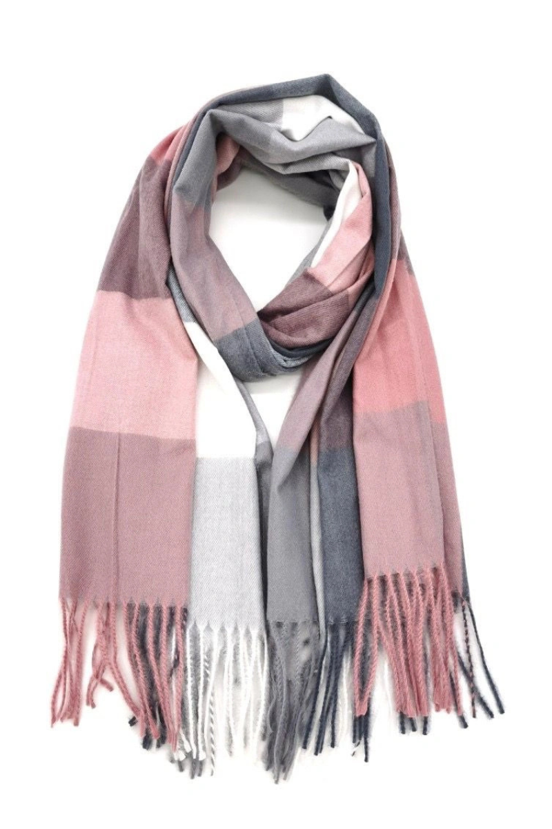 Šiltas pastelinių atspalvių (rožinės, pilkos spalvos) rudens-žiemos šalikas – NAUDOJAMAS dabar!