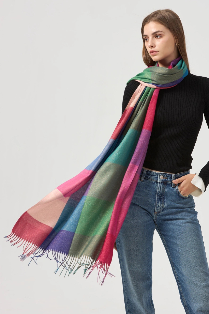 Gražus didelis ir šiltas pastelinių spalvų šalikas sušildys kaklą rudens-žiemos sezonu
