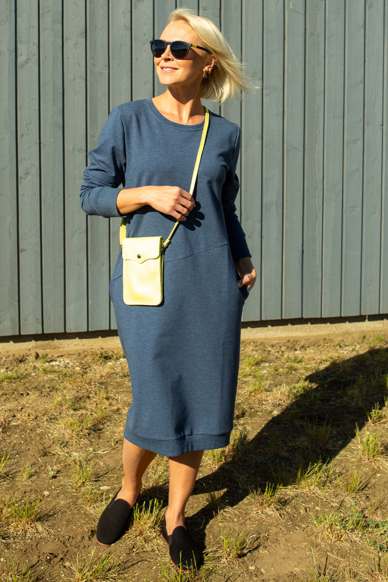 Graži megztinė suknelė su kišenėmis, pasiūta iš odai malonaus audinio, tikriausiai yra viena patogiausių suknelių, nes ją galima dėvėti ir laisvalaikiu, ir darbe. su šia suknele jausitės gerai, nes suknelės medžiaga yra pakankamai šilta, suknelė yra gero ilgio (daugumos moterų keliai lieka suknelės viduje) ir suknelę galima dėvėti visais keturiais metų laikais. šaltesniu oru po ja tereikia užsimauti šiltas pėdkelnes.