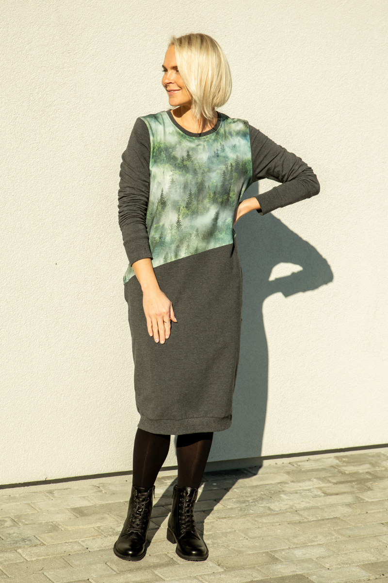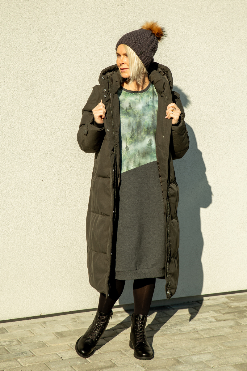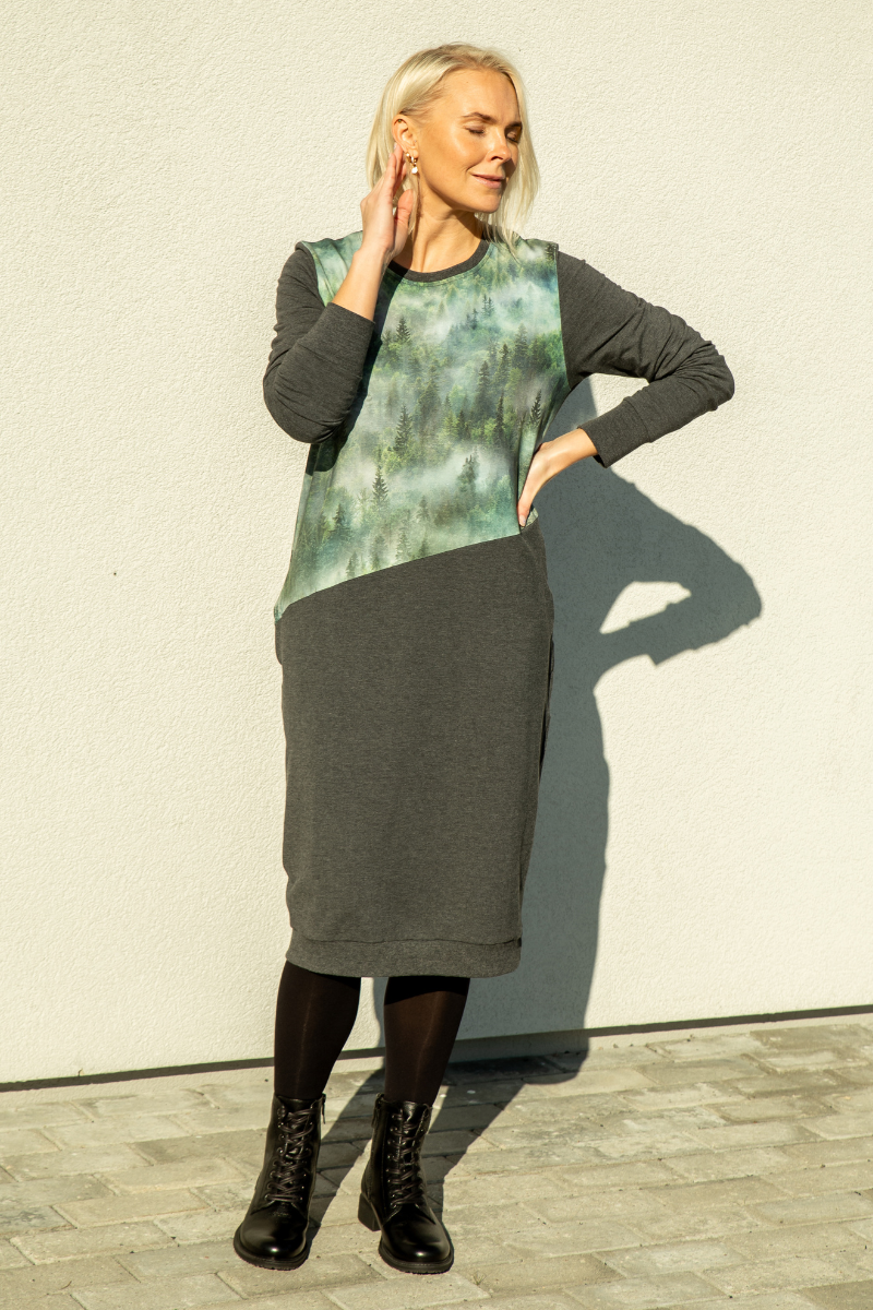 Ilgesnė figūrą primenanti suknelė su kišenėmis ir gobtuvu Helen Rabamets-Kohe, sandėlyje yra XL dydžio