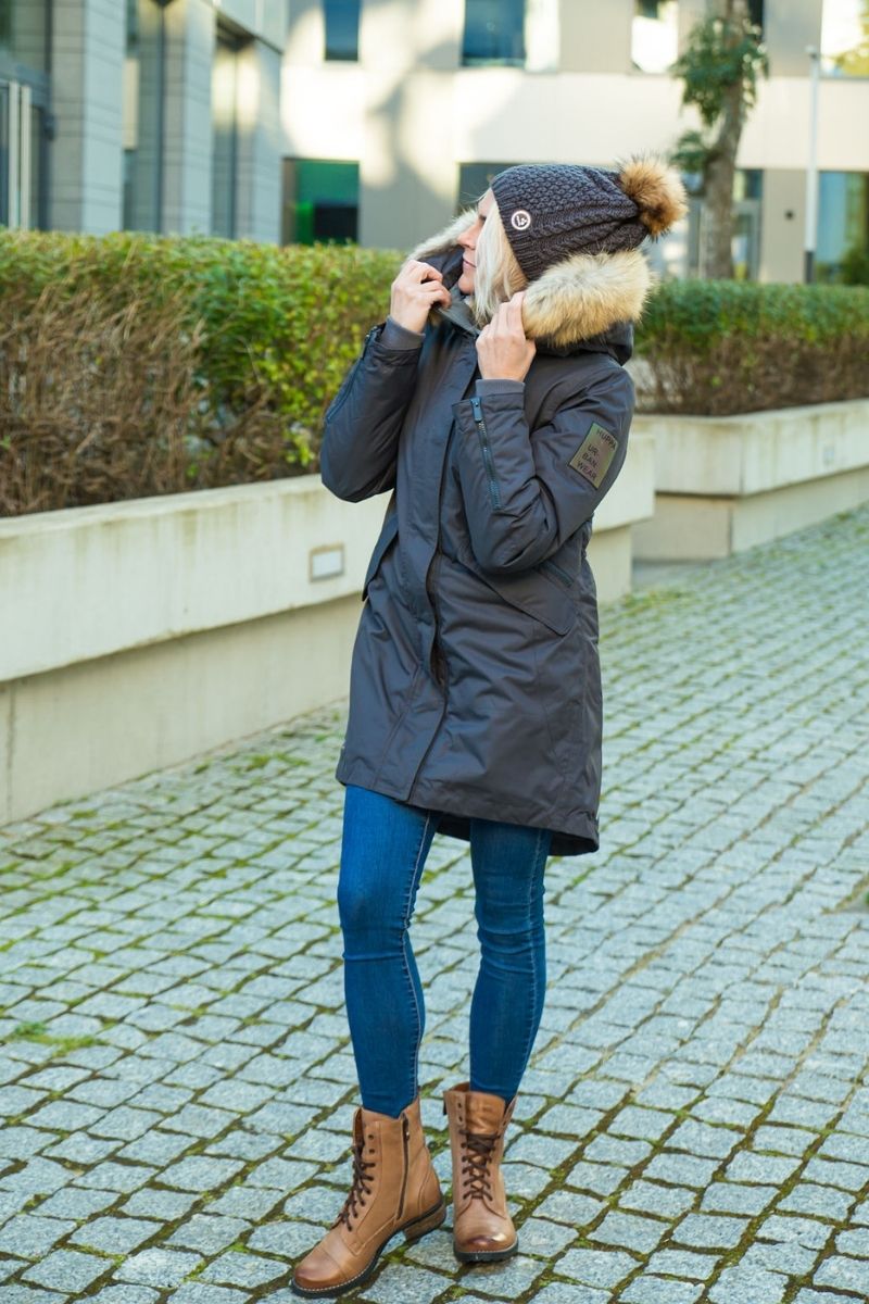 KUOMA moteriški pilkos spalvos žieminiai batai su raišteliais -S šiltu kailiniu pamušalu ir vandenį atstumiančia medžiaga – NAUDOJAMI NAUJAI – TIK KINDE