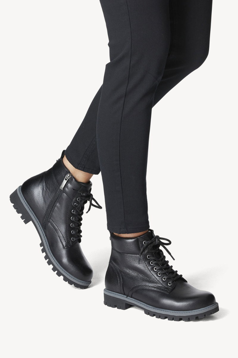 Stilingai švarūs “Tamaris” batai – tai puikūs batai įvairaus amžiaus moterims rudens sezonui. Batai turi patogų žemą kulniuką, todėl tinka ir jaunesnėms, ir vyresnio amžiaus moterims. Viduje yra patogus atidaromas užtrauktukas, kuriuo lengva batus apsiauti. vidus išklotas žemo plauko šiltu pamušalu, o nuostabus “Touch It” paminkštintas putplasčio vidpadis prisitaiko prie pėdos formos, kad būtų maksimaliai patogus. Guminis padas užtikrina gerą sukibimą su paviršiumi net ir lietingu oru.