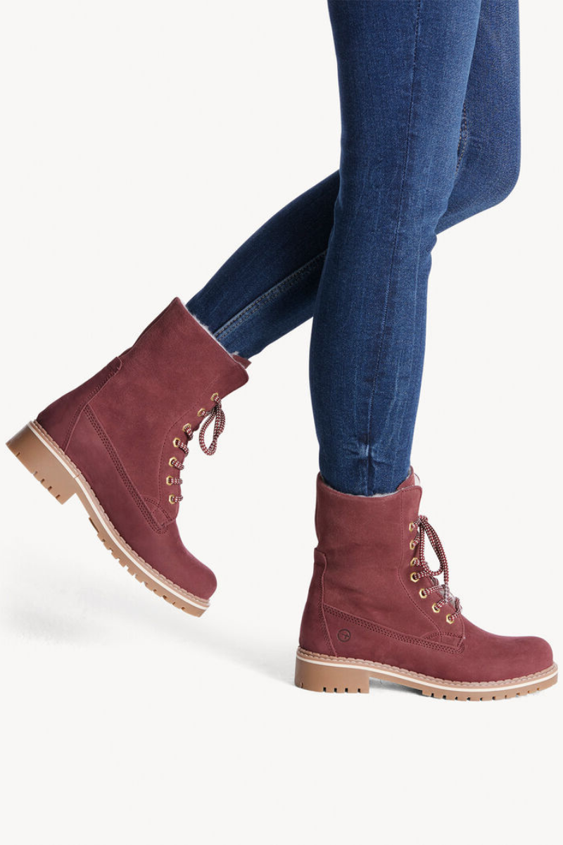 TAMARIS moteriški natūralios odos šilti avies odos batai, bordo raudonos spalvos – NAUDOJAME – SUPER KAINA