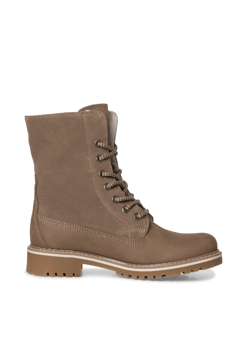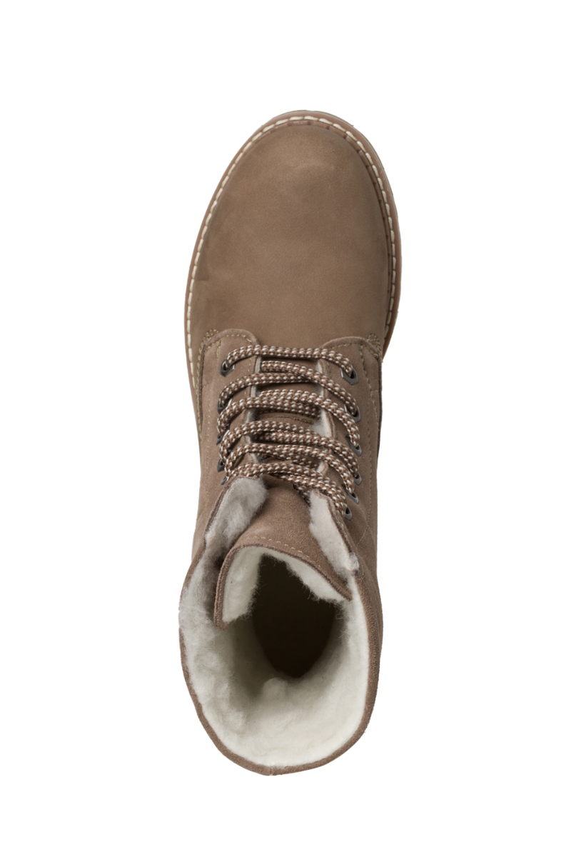 TAMARIS moteriški šviesiai rudi batai su bakeliu iš natūralios odos su šiltu avies vilnos kailiu – KAINUOJAME – SUPER KAINA