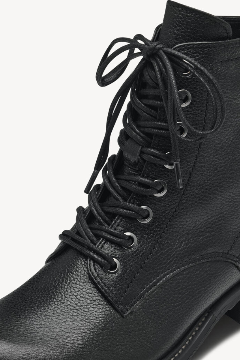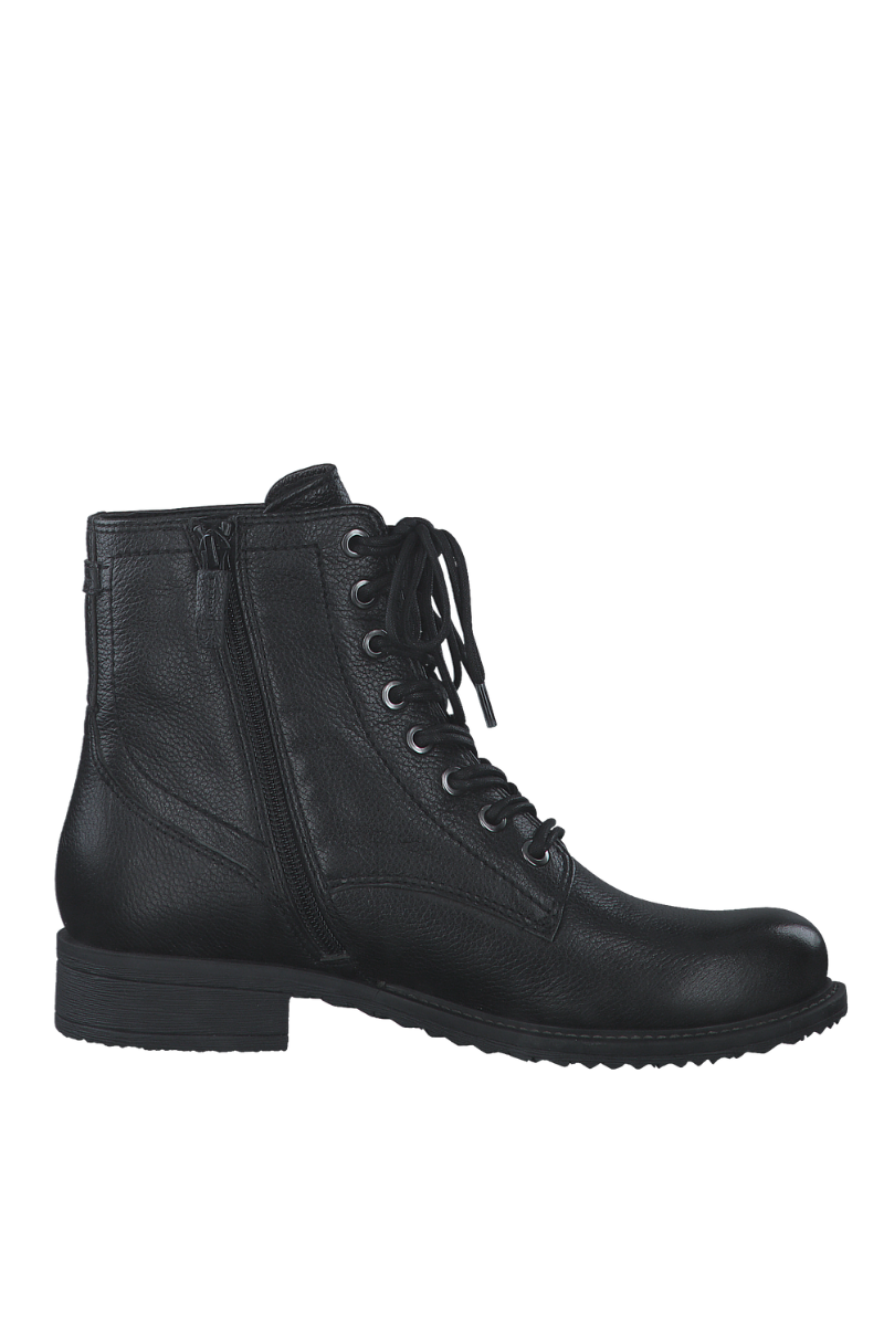 Stilingai švarūs “Tamaris” batai – tai puikūs batai įvairaus amžiaus moterims rudens sezonui. Batai yra patogaus žemo kulno, todėl tinka ir jaunesnėms, ir vyresnėms moterims. tekstūruotos odos batviršis su akį traukiančiu kaspinėliu ir diskretiška odine prekės ženklo etikete nugaroje. Viduje yra patogus užsegimas, kuriuo batus lengva užsidėti. vidus išklotas žemo plauko tekstilės medžiaga, o nuostabus “Touch It” paminkštintas putplasčio vidpadis prisitaiko prie pėdos formos, kad būtų maksimaliai patogu. Guminis padas užtikrina gerą sukibimą su paviršiumi net ir lietingu oru.