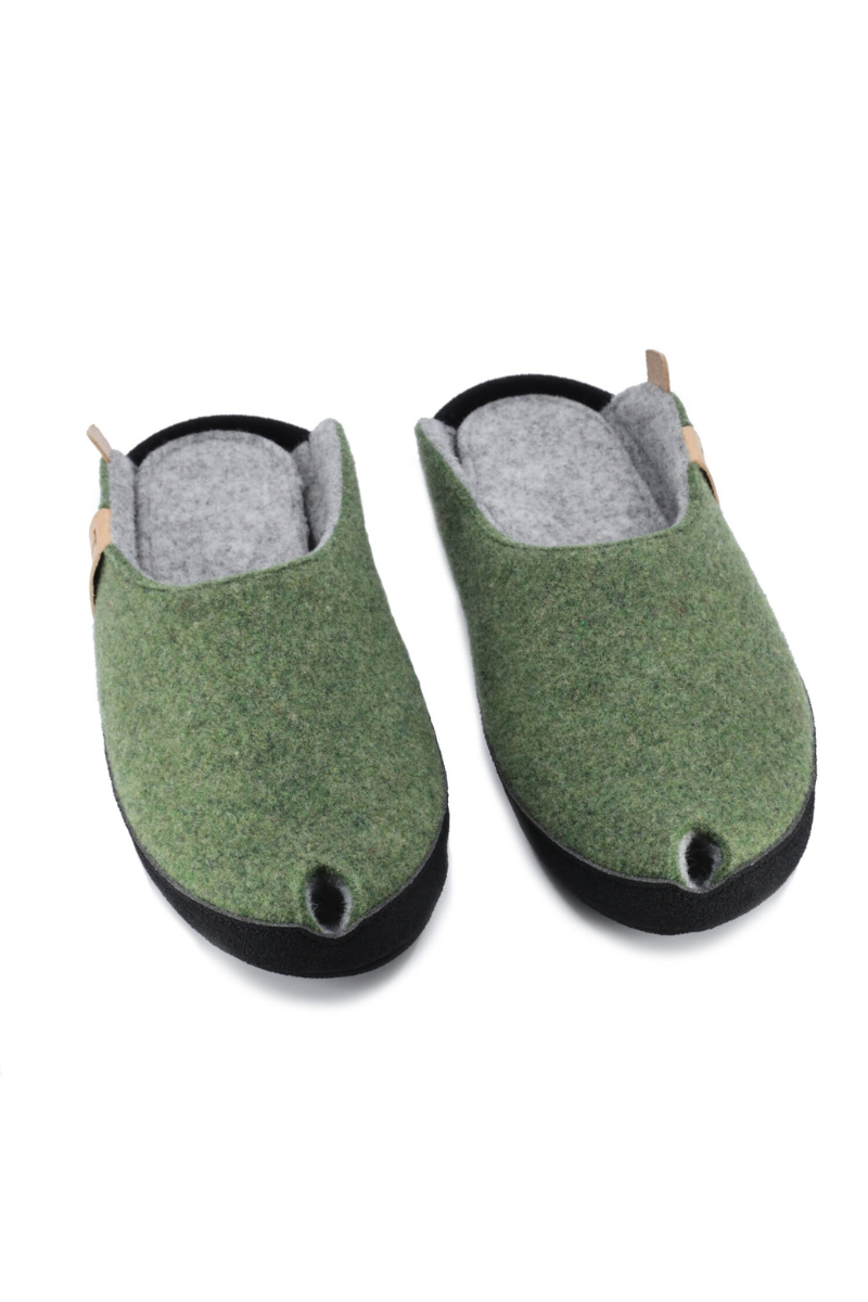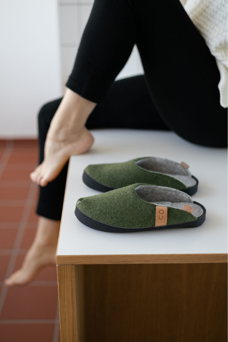 TOKU Brüssels Estijos rankų darbo šlepetės samanų žalia – NAUDOJAMOS